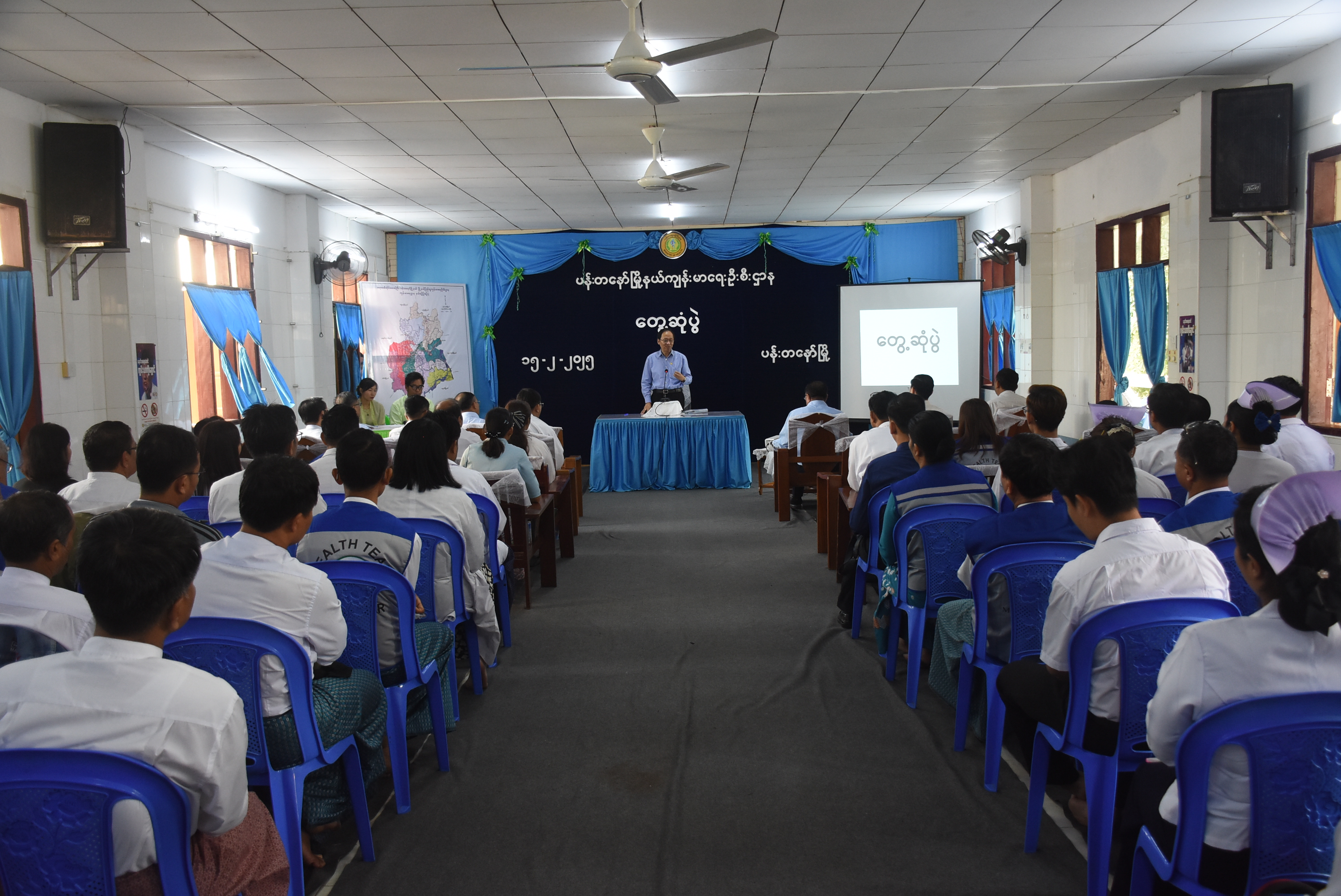 ဦးစွာ ပြည်ထောင်စုဝန်ကြီးနှင့်အဖွဲ့သည် ပန်းတနော်မြို့နယ်ပြည်သူ့ဆေးရုံ၊ အစည်းအဝေးခန်းမ၌ မြို့နယ်ပြည်သူ့ဆေးရုံမှ ကျန်းမာရေးဝန်ထမ်းများ၊ ပြည်သူ့ကျန်းမာရေး ဦးစီးဌာနဝန်ထမ်းများနှင့် တွေ့ဆုံ၍ ငှက်ဖျားရောဂါဖြစ်ပွားမှုနှင့် ပတ်သက်၍ ရောဂါကာကွယ်ထိန်းချုပ်ရေးလုပ်ငန်းများ စဉ်ဆက်မပြတ် ဆောင်ရွက်ရန်၊ ပုံမှန်ကာကွယ်ဆေးထိုးလုပ်ငန်းများ အပါအဝင် ပြည်သူ့ကျန်းမာရေး လုပ်ငန်းများနှင့်ပတ်သက်၍ ပိုမိုကြိုးစားအားထုတ်ဆောင်ရွက်ရန် မှာကြားသည်။