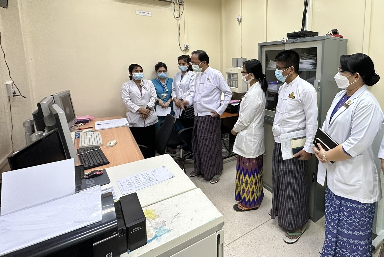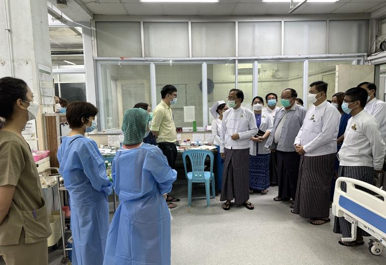ကျန်းမာရေးဝန်ကြီးဌာန ပြည်ထောင်စုဝန်ကြီး ပါမောက္ခဒေါက်တာသက်ခိုင်ဝင်းသည် တာဝန် ရှိသူများနှင့်အတူ ယနေ့ နံနက်ပိုင်းတွင် ရန်ကုန်ပြည်သူ့ဆေးရုံကြီးသို့ သွားရောက်ကာ ဆေးကုသရေး လုပ်ငန်းများဆောင်ရွက်နေမှုများကို ကြည့်ရှုစစ်ဆေးသည်။