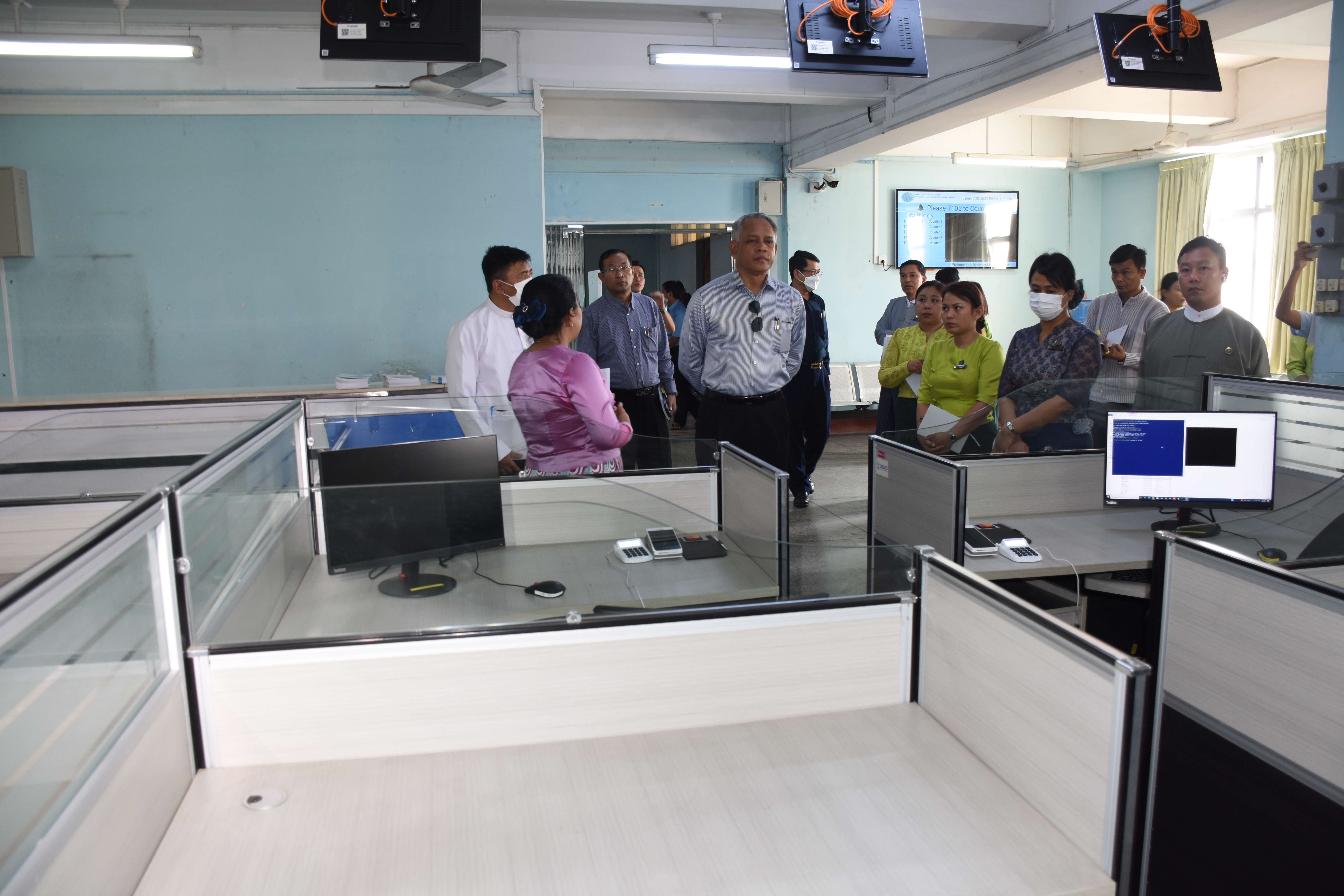 စီးပွားရေးနှင့် ကူးသန်းရောင်းဝယ်ရေးဝန်ကြီးဌာန၊ ပြည်ထောင်စုဝန်ကြီး ဦးအောင်နိုင်ဦးသည် ယနေ့ မွန်းလွဲ၁ နာရီက ရန်ကုန်တိုင်းဒေသကြီးရုံး အဆောက်အဦတွင် မူပိုင်ခွင့်ဦးစီးဌာန၊ ရန်ကုန် တိုင်းရုံး ဖွင့်လှစ်မည့်နေရာကို လိုက်လံကြည့်ရှု စစ်ဆေးသည်။