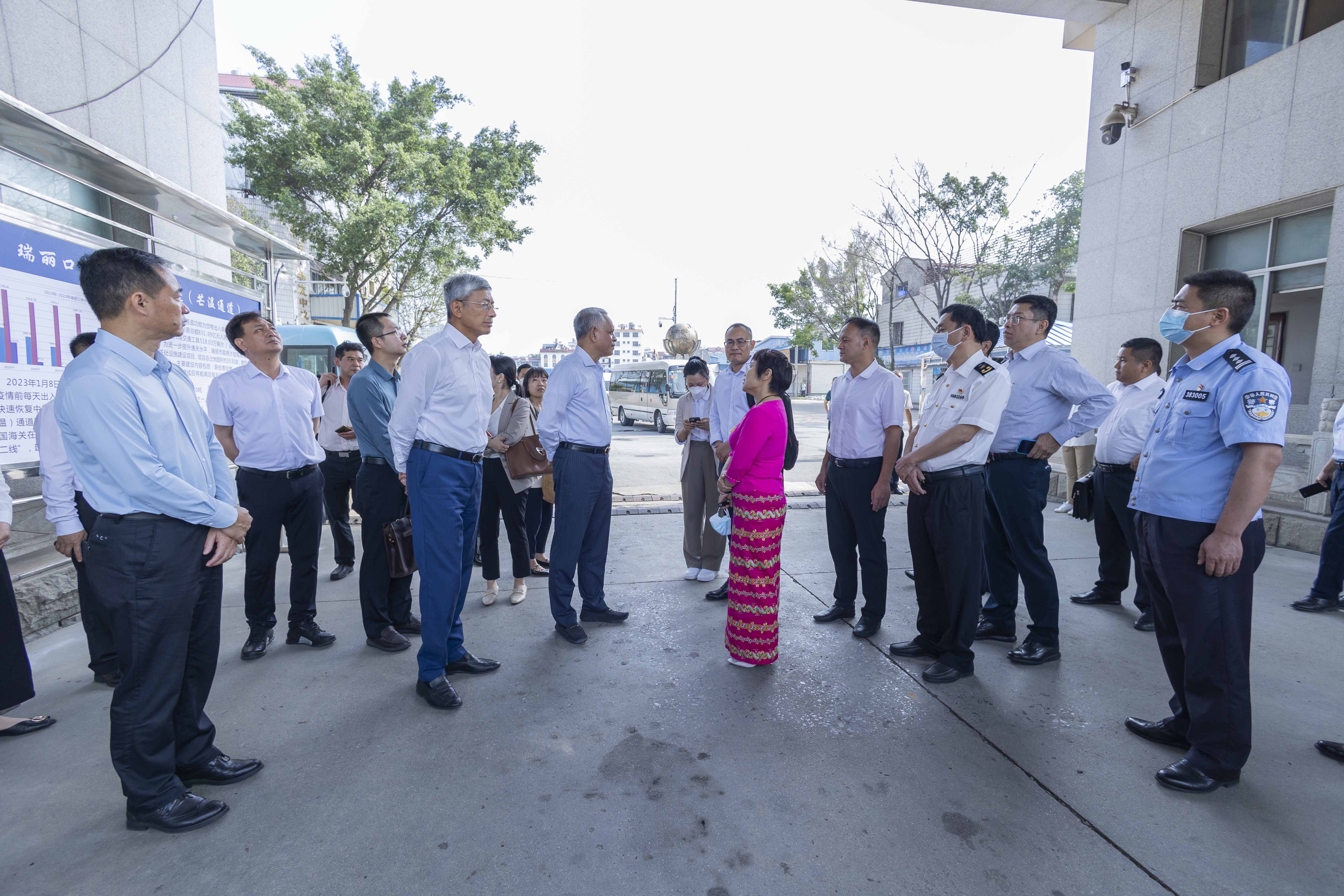 ထို့နောက်ပြည်ထောင်စုဝန်ကြီးနှင့် တာဝန်ရှိသူများသည် မြန်မာနိုင်ငံဆိုင်ရာ တရုတ်နိုင်ငံ သံအမတ်ကြီး၊ တဲဟုန်မြို့ ပြည်နယ်ခွဲပါတီအတွင်းရေးမှူး၊ Mr. Jiang Shan ကုန်သွယ်မှုနှင့် သက်ဆိုင်သော ဌာနဆိုင်ရာများမှ တာဝန်ရှိသူများနှင့် တွေ့ဆုံ၍ ကုန်သွယ်မှုလျင်မြန်ချောမွေ့စေရေး၊ ကုန်သွယ်မှုဖွံ့ဖြိုးတိုးတက်ရေး၊ နယ်စပ်ဂိတ်များ အကြား အခြေခံအဆောက်အဦများ မြှင့်တင်နိုင်ရေး၊ ကုန်သွယ်မှုအတွက် ဘဏ်စနစ်တိုးမြှင့်အသုံးပြုပြီး ပို့ကုန်သွင်းကုန် လုပ်ငန်း များဆောင်ရွက်ရေး၊ နှစ်နိုင်ငံ သဘောတူညီပြီးဖြစ်သည့် နယ်စပ်စီးပွားရေးပူးပေါင်းဆောင်ရွက်မှု ဇုန်အကောင် အထည်ဖော်ဆောင်ရွက်ရေး၊ မြန်မာ-တရုတ်နယ်စပ်ကုန်သွယ်မှုပူးပေါင်းညှိနှိုင်းရေး ကော်မတီအစည်းအဝေးပုံမှန် ကျင်းပနိုင်ရေးဆိုင်ရာကိစ္စရပ်များ၊ နှစ်နိုင်ငံအကြား တရားမဝင် ကုန်သွယ်မှုများ လျော့နည်းပပျောက်စေရေးနှင့် ခရီးသွားလုပ်ငန်းဖွံ့ ဖြိုးတိုးတက်ရေးဆိုင်ရာ ကိစ္စရပ်များကို ရင်းနှီးပွင့်လင်းစွာ ဆွေးနွေးခဲ့ကြောင်း သိရသည်။