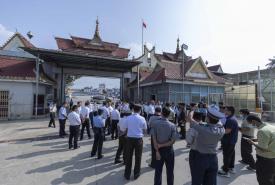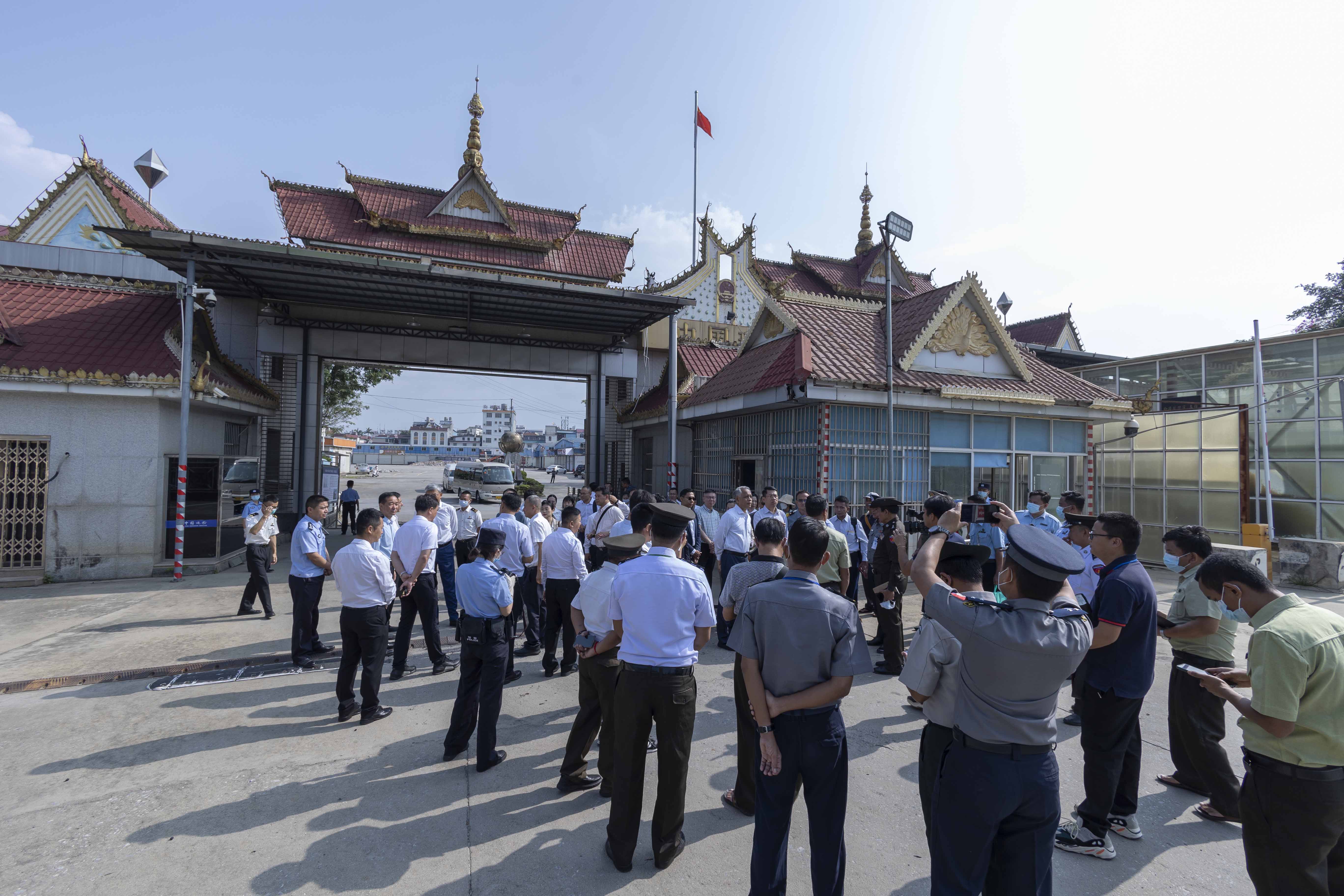 ပြည်ထောင်စုဝန်ကြီးနှင့်အဖွဲ့သည် ယမန်နေ့က မြန်မာနိုင်ငံဆိုင်ရာ တရုတ်ပြည်သူ့ သမ္မတနိုင်ငံသံအမတ်ကြီးနှင့်အတူ တရုတ်-မြန်မာ နယ်စပ်ဂိတ်များဖြစ်သည့် မန်ဝိန်း၊ နန်းတော်၊ ဆင်ဖြူ၊ ဟိုဆောင်၊ ကျိမ်စန်းကျော့၊ ပန်ဆိုင်/ကျူကုတ် နယ်စပ်ဂိတ်များသို့ သွားရောက်၍ နှစ်နိုင်ငံနယ်စပ်ဂိတ်များမှ လူဝင်/လူထွက် လုပ်ငန်းစဉ်များဆောင် ရွက်နေမှုနှင့် ပို့ကုန်၊ သွင်းကုန် ယာဉ်အဝင်/အထွက် ရှင်းလင်းရေးလုပ်ငန်းစဉ်များကို ကြည့်ရှုစစ်ဆေးခဲ့ရာ တာဝန်ရှိသူများက တင်ပြရာ ပြည်ထောင်စုဝန်ကြီးက လိုအပ်သည်များကို ပေါင်းစပ်ညှိနှိုင်းဆောင်ရွက်ပေးသည်။