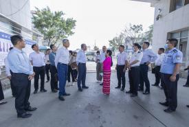 ဆက်လက်၍ ပြည်ထောင်စုဝန်ကြီးနှင့် ကိုယ်စားလှယ်အဖွဲ့သည် ရွှေလီမြို့တွင် မြန်မာ နိုင်ငံမှတင်ပို့သည့် ကျောက်စိမ်းများအား အချောထည်ပြုလုပ်၍ တရုတ်နိုင်ငံတစ်ဝှမ်းသို့ Online/ Offline ဖြင့် ဖြန့်ဖြူးရောင်းချနေသည့် ကျောက်စိမ်းရောင်း ဝယ်ရေးစင်တာသို့ သွားရောက် ကြည့်ရှုပြီး မြန်မာနိုင်ငံမှ တင်ပို့သည့်ဆန်များ တန်ဖိုးမြှင့်ထုတ်ကုန်အဖြစ် ထုတ်လုပ်နေသည့်လုပ်ငန်းဆောင်ရွက်မှုကို သွားရောက်ကြည့်ရှုခဲ့ကြသည်။