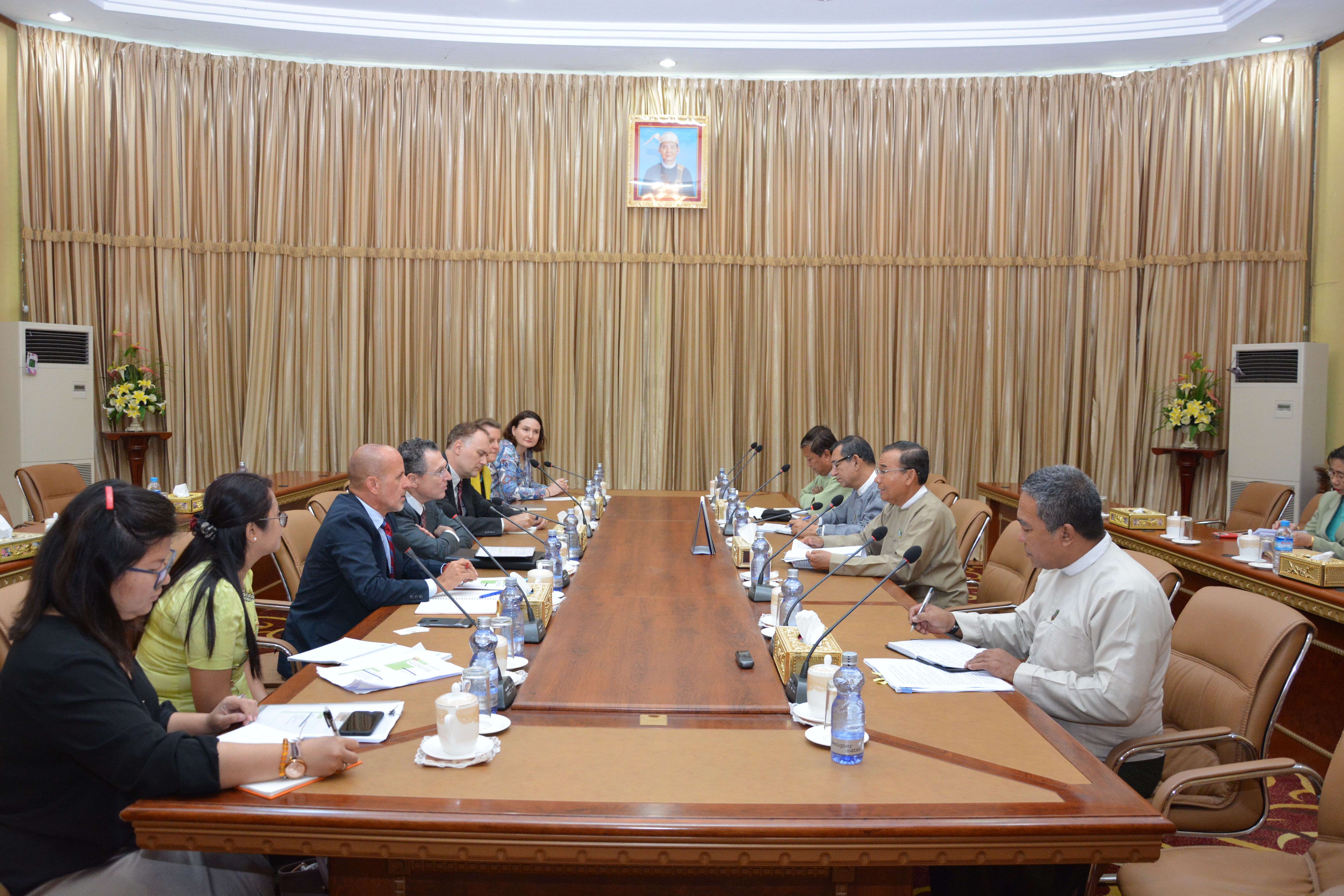 သယံဇာတနှင့် သဘာဝပတ်ဝန်းကျင် ထိန်းသိမ်းရေးဝန်ကြီးဌာန၊ ပြည်ထောင်စုဝန်ကြီး ဦးအုန်းဝင်းသည် The World Bank မှ Program Leader, Mr. Mark Austin နှင့်အဖွဲ့အား ယနေ့နံနက် ၉ နာရီခွဲတွင် ပြည်ထောင်စုဝန်ကြီးရုံး ဧည့်ခန်းမ၌ လက်ခံတွေ့ဆုံသည်။