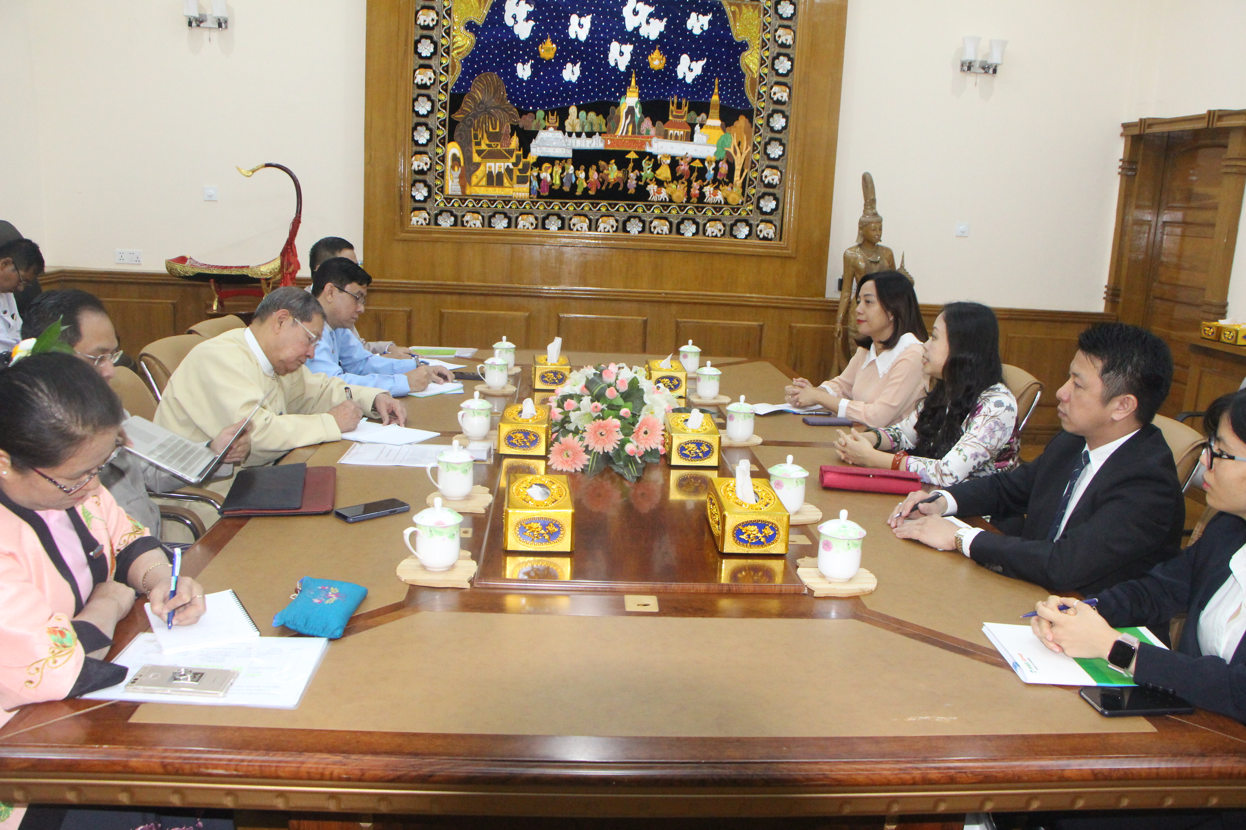 စီမံကိန်းနှင့် ဘဏ္ဍာရေးဝန်ကြီးဌာန ပြည်ထောင်စုဝန်ကြီး ဦးစိုးဝင်းသည် ယနေ့ နံနက်ပိုင်းတွင် မြန်မာနိုင်ငံဆိုင်ရာ ဗီယက်နမ်နိုင်ငံ သံအမတ်ကြီး H.E. Dr. Luan Thuy Duong နှင့် ဗြိတိန်နိုင်ငံ သံအမတ်ကြီး H.E. Daniel Patrick Chugg တို့အား စီမံကိန်းနှင့် ဘဏ္ဍာရေးဝန်ကြီးဌာန ဧည့်ခန်းမ၌ သီးခြားစီလက်ခံတွေ့ဆုံသည်။