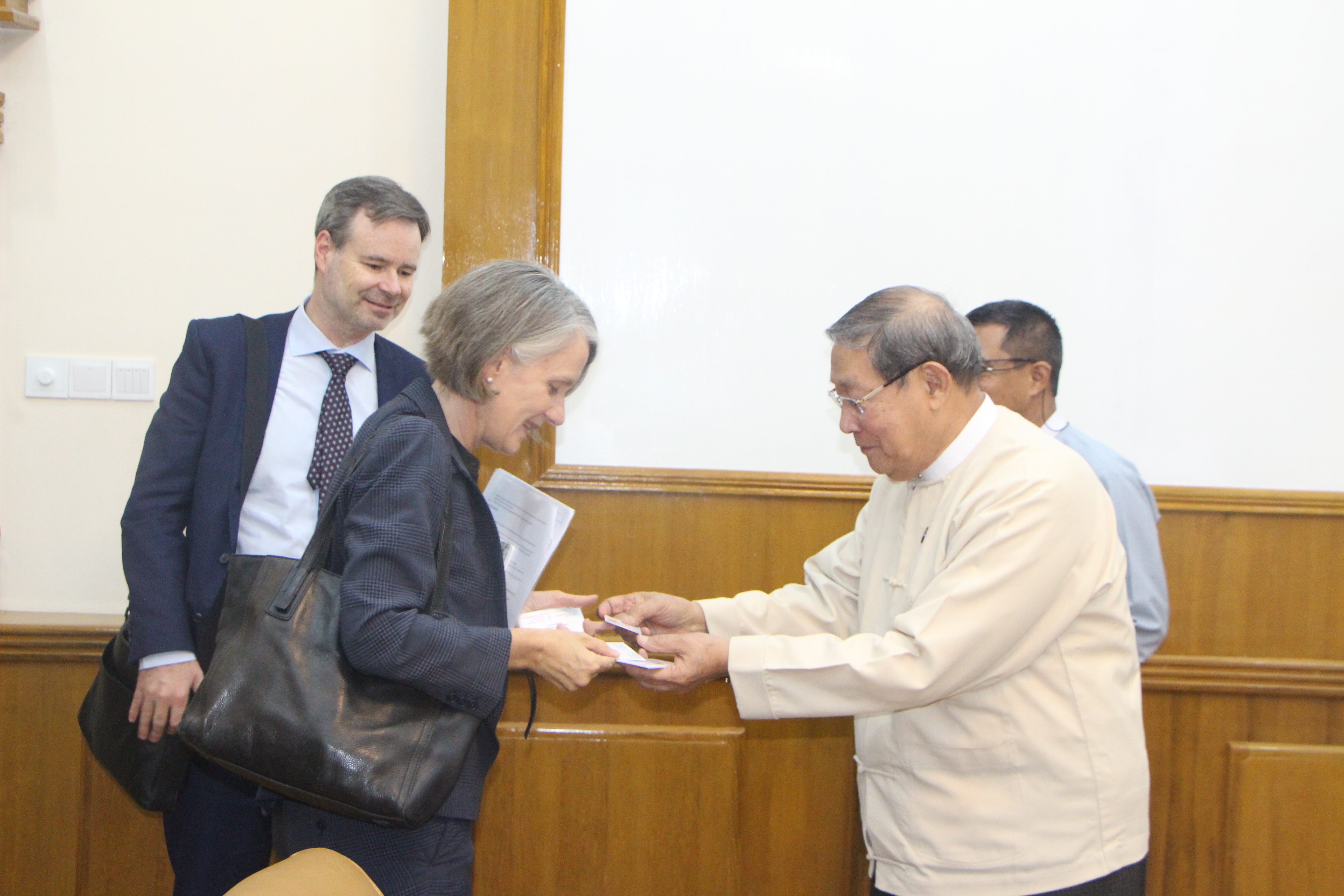 စီမံကိန်းနှင့် ဘဏ္ဍာရေးဝန်ကြီးဌာန ပြည်ထောင်စုဝန်ကြီး ဦးစိုးဝင်းသည် သြစတြေးလျနိုင်ငံ သံအမတ်ကြီး H.E. Ms. Andrea Faulkner နှင့်အဖွဲ့အား ယနေ့ ညနေ ၃ နာရီခွဲတွင် စီမံကိန်းနှင့်ဘဏ္ဍာရေးဝန်ကြီးဌာန၊ ရုံးအမှတ် (၂၆)၌ လက်ခံတွေ့ဆုံသည်။