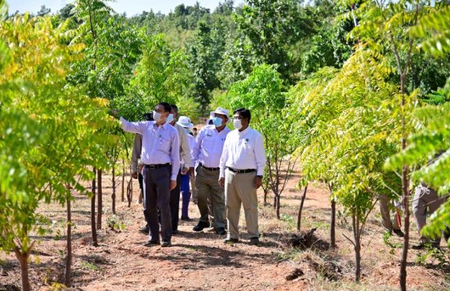 သယံဇာတနှင့် သဘာဝပတ်ဝန်းကျင်ထိန်းသိမ်းရေးဝန်ကြီးဌာန၊ ပြည်ထောင်စုဝန်ကြီး ဦးခင်မောင်ရီ သည် ယမန်နေ့ မွန်းလွဲပိုင်းတွင် မကွေးတိုင်းဒေသကြီး၊ တောင်းတွင်းကြီး မြို့နယ်၊ ငမင်ကြိုးဝိုင်း အတွင်း တည်ထောင်ထားသော သစ်မျိုးစုံစိုက်ခင်း ဧက (၁၀၀) ကို ကြည့်ရှုစစ်ဆေးရာ တာဝန်ရှိသူ များက သစ်မျိုး(၅၁)မျိုးဖြင့် စိုက်ပျိုးထားမှုအခြေအနေနှင့် သုတေသန ဆောင်ရွက်မှုကို ရှင်းလင်း တင်ပြရာ ပြည်ထောင်စုဝန်ကြီးက လိုအပ်သည်များ မှာကြားသည်။