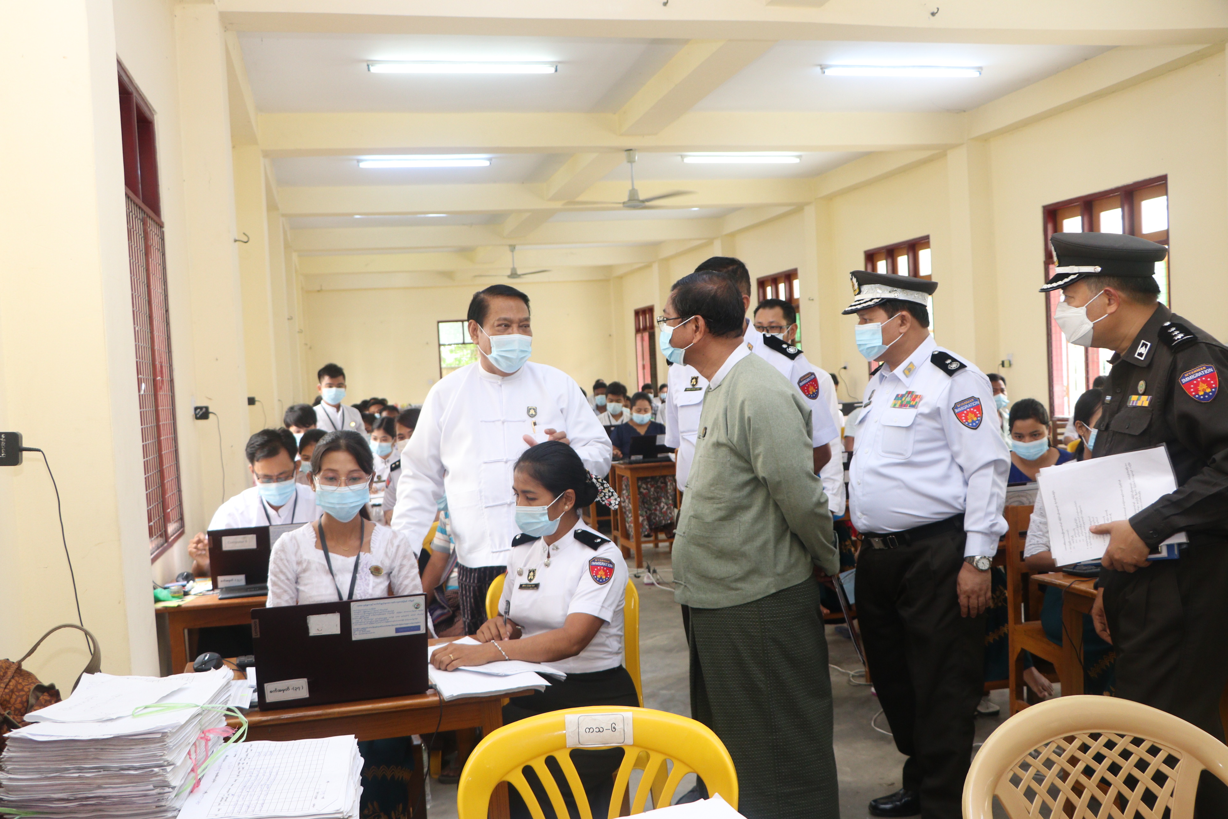 လူဝင်မှုကြီးကြပ်ရေးနှင့် ပြည်သူ့အင်အားဝန်ကြီးဌာန ပြည်ထောင်စုဝန်ကြီး ဦးခင်ရီသည် ယနေ့ မွန်းလွဲပိုင်းတွင် ရန်ကုန်တိုင်းဒေသကြီး၊ မင်္ဂလာဒုံမြို့နယ်ရှိ အထွေထွေအုပ်ချုပ်ရေး ဦးစီးဌာန သင်တန်းကျောင်း၌ နောင်ကျင်းပမည့် ရွေးကောက်ပွဲများတွင် မဲဆန္ဒရှင် မှန်ကန်ရေးအတွက် မဲပေးပိုင်ခွင့်ရှိသူ စာရင်းများပြုစုခြင်းနှင့် နိုင်ငံသားကတ်နှင့် အိမ်ထောင်စု လူဦးရေစာရင်းများ မှန်ကန်မှု ရှိစေရေးအတွက် မြေပြင်စာရင်းများနှင့် တိုက်ဆိုင်စစ်ဆေးကာ ကွန်ပျူတာများဖြင့် ဖြည့်သွင်းဆောင်ရွက်နေမှုကို သွားရောက်ကြည့်ရှုအားပေးရာ အထွေထွေရွေးကောက်ပွဲ ကော်မရှင်မှ ညွှန်ကြားရေးမှူး ဦးသိန်းဦးနှင့် တာဝန်ရှိသူများက လုပ်ငန်းဆောင်ရွက်နေမှုနှင့် လုပ်ငန်းလိုအပ်ချက်များကို လိုက်လံရှင်းလင်းတင်ပြကြသည်။