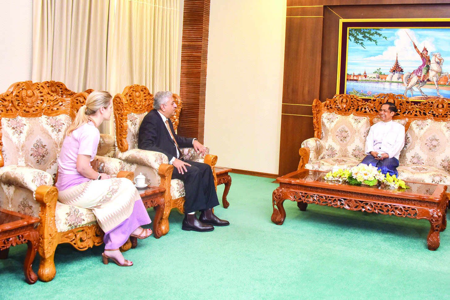 အပြည်ပြည်ဆိုင်ရာ ပူးပေါင်း ဆောင်ရွက်ရေး ဝန်ကြီးဌာန ပြည်ထောင်စုဝန်ကြီး ဦးကိုကိုလှိုင် သည် ဘန်ကောက်မြို့အခြေစိုက် ကုလသမဂ္ဂစီမံကိန်း ဝန်ဆောင်မှု ရုံး၏ အာရှဒေသဆိုင်ရာ ညွှန်ကြား ရေးမှူး မစ္စတာ ဆန်ဂျေး မာသာ ကို ယနေ့နံနက် ၁၀ နာရီတွင် နေပြည်တော်ရှိ အပြည်ပြည်ဆိုင်ရာ ပူးပေါင်းဆောင်ရွက်ရေးဝန်ကြီးဌာန၌ လက်ခံတွေ့ဆုံသည်။