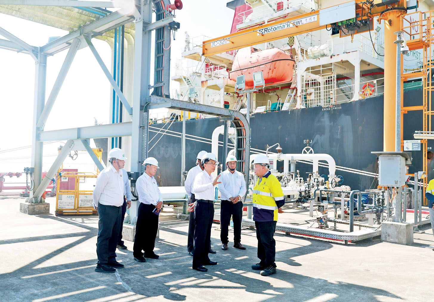 တင်ပြမှုများအပေါ် ပြည်ထောင်စုဝန်ကြီးက သဘာဝဓာတ်ငွေ့ရည်(LNG)မှ ဓာတ်ငွေ့ပြန်လည် ထုတ်ယူသုံးစွဲရာတွင် ထွက်ရှိလာသည့် ဓာတ်ငွေ့မှာ သန့်ရှင်းမှုရှိသည့်အတွက် သဘာဝပတ်ဝန်းကျင် ထိခိုက်မှုအနည်းဆုံးဖြစ်ပါကြောင်း၊ ထို့ပြင် အပူစွမ်းအင်လည်း အလွန်မြင့်မားသည့်အတွက် လျှပ်စစ် ဓာတ်အားပိုမို၍ ထွက်ရှိနိုင်မည်ဖြစ်ပါကြောင်း၊ ယနေ့ LNG ကို ကမ္ဘာ့နိုင်ငံများတွင် အဓိကစွမ်းအင်အရင်း အမြစ်တစ်ခုအဖြစ် အသုံးပြုနေကြရာ လာမည့်ဆယ်စု နှစ်အတွင်း LNG သုံးစွဲမှုသည် များစွာ တိုးမြင့်လာမည်ဟု ခန့်မှန်းထားရှိပါကြောင်း၊ မိမိတို့နိုင်ငံအနေဖြင့် LNG အသုံးပြုသည့် နည်းပညာပိုင်းနှင့်ပတ်သက်၍ လေ့လာသင်ယူပြီး ကိုယ်တိုင်ဆောင်ရွက်နိုင်ရန် ကြိုးပမ်းဆောင်ရွက်လျက်ရှိပါကြောင်း ပြောကြားပြီး သဘာဝဓာတ်ငွေ့ရည်သိုလှောင်သင်္ဘောနှင့် သဘာဝဓာတ်ငွေ့ရည် (LNG) ကို သဘာဝဓာတ်ငွေ့ ပြန်လည် ပြုလုပ်၍ လျှပ်စစ်ဓာတ်အား ထုတ်လုပ်လျက်ရှိသည့် စက်ရုံလုပ်ငန်းအခြေအနေကို ကြည့်ရှုစစ်ဆေးသည်။