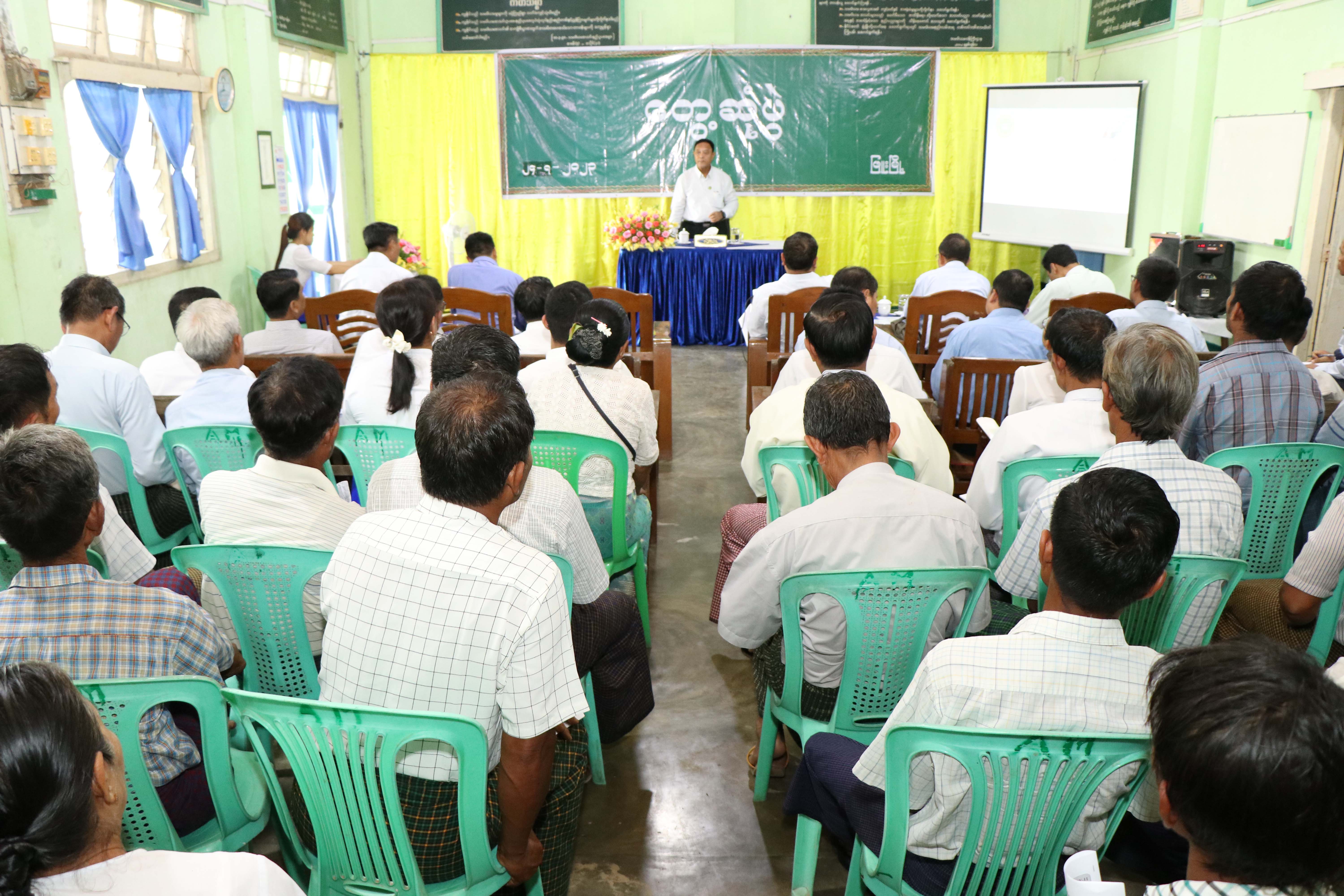 ဦးစွာ ပြည်ထောင်စုဝန်ကြီးနှင့်အဖွဲ့သည် ပဲခူးတိုင်းဒေသကြီး၊ ရေတာရှည်မြို့နယ် သပြေ တန်းကျေးရွာရှိ ယွန်းလျှံ လယ်ယာအထောက်အကူပြုစခန်းသို့ ရောက်ရှိပြီး နိုင်ငံ့စီးပွားမြှင့်တင်ရေး ရန်ပုံငွေဖြင့် မိုးစပါးစိုက်ပျိုးမည့် သမဝါယမအသင်းသား တောင်သူများ၊ တာဝန်ရှိသူများ နှင့်တွေ့ဆုံ ကာမိုးစပါး စိုက်ပျိုးရေးလုပ်ငန်းများ အတွက် လိုအပ်သည့် မျိုး၊ သွင်းအားစု၊ နည်းပညာ၊ အရင်းအနှီးများ ထောက်ပံ့ပေးလျက်ရှိပြီး အမှန်တကယ် ဆောင်ရွက် လိုသူများဖြင့် သမဝါယမအသင်းအဖွဲ့များဖွဲ့စည်း၍ အောင်မြင်အောင် ဆောင်ရွက်ကြရမည်ဖြစ်ကြောင်း၊ အသင်းသားတောင်သူများအနေဖြင့် အထွက်တိုးမျိုးစပါးများ စိုက်ပျိုးခြင်းဖြင့် ပန်းတိုင်အထွက်နှုန်းတိုးကာ ဝင်ငွေတိုးပွားလာ မည် ဖြစ်ကြောင်း၊ လုပ်ငန်းများ အောင်မြင်ရေးအတွက် သက်ဆိုင်ရာ တာဝန်ရှိသူများက ကြီးကြပ် ကွပ်ကဲဆောင်ရွက်သွားရမည်ဖြစ်ကြောင်း ပြောကြားပြီး လုပ်ငန်းလိုအပ်ချက်များကို ပေါင်းစပ် ဖြည့်ဆည်း ဆောင်ရွက်ပေးကာ ဂရိတ်ဝေါစိုက်ပျိုးရေးကုမ္ပဏီ၏ အထွက်တိုးမျိုးစပါးများ ခင်းကျင်းပြသထားမှုကို ကြည့်ရှု အားပေးသည်။