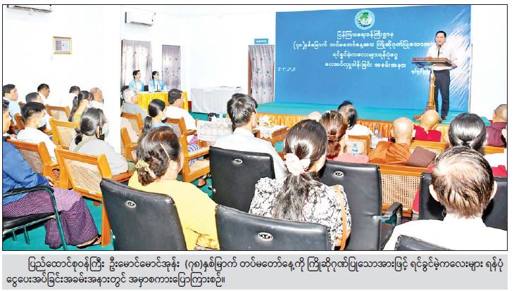 ပြန်ကြားရေးဝန်ကြီးဌာန ပြည်ထောင်စုဝန်ကြီး ဦးမောင်မောင်အုန်းသည် ယနေ့မွန်းလွဲ ၁ နာရီတွင် ရန်ကုန်မြို့သိမ်ဖြူလမ်းရှိ ပုံနှိပ်ရေးနှင့် ထုတ်ဝေရေးဦးစီးဌာန အစည်းအဝေးခန်းမ၌ အမျိုးသားစာပေဆု စိစစ်ရွေးချယ်ရေး ကော်မတီဝင်များ၊ စာပေဗိမာန်စာမူဆု စိစစ်ရွေးချယ်ရေးအဖွဲ့မှ စာပေပညာရှင်များနှင့် တွေ့ဆုံသည်။