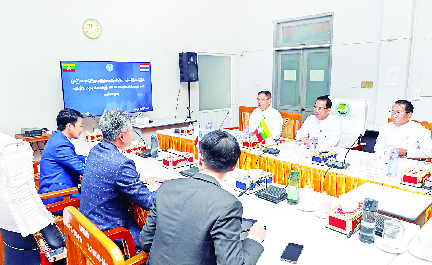 တွေ့ဆုံပွဲသို့ ဒုတိယဝန်ကြီး ဦးရဲတင့်၊ အမြဲတမ်းအတွင်းဝန်နှင့် ထိုင်းနိုင်ငံ သံရုံးမှ တာဝန်ရှိသူများ တက်ရောက်ကြသည်။