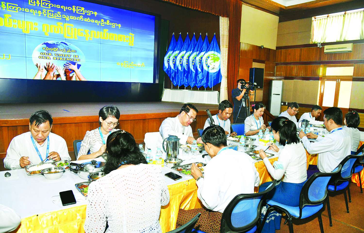 ထိုနောက် ပြည်ထောင်စုဝန်ကြီး၊ ဒုတိယဝန်ကြီး၊ အမြဲတမ်းအတွင်းဝန်နှင့် ဌာနဆိုင်ရာအကြီးအကဲများသည် ပြန်ကြားရေးနှင့် ပြည်သူ့ဆက်ဆံရေးဦးစီးဌာန အမှုထမ်း၊ အရာထမ်းများနှင့်အတူ နေ့လယ်စာအတူတကွ သုံးဆောင်ကြသည်။