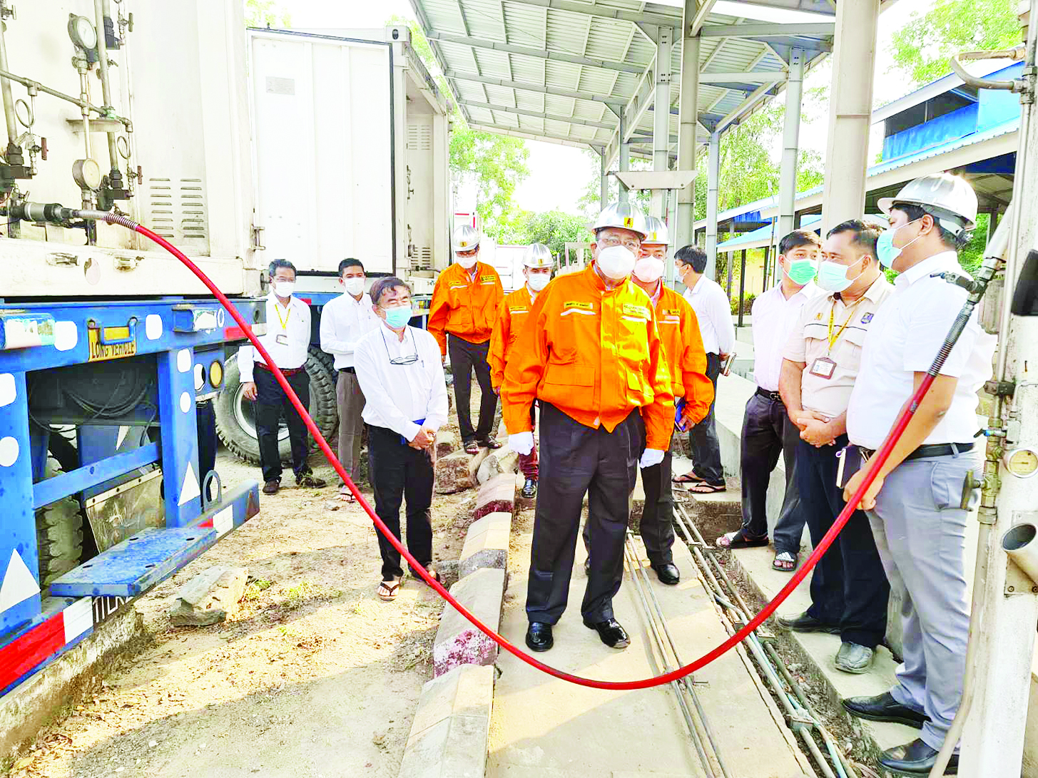 ပြည်ထောင်စုဝန်ကြီးနှင့်အဖွဲ့အား အထွေထွေ မန်နေဂျာ(CNG)က သဘာဝဓာတ်ငွေ့သုံး မော်တော် ယာဉ်များကို CNG ဖြန့်ဖြူးဆောင်ရွက်နေမှုနှင့် စပ်လျဉ်း၍ ရန်ကုန်တိုင်းဒေသကြီး၊ မန္တလေးတိုင်း ဒေသကြီးနှင့် မကွေးတိုင်းဒေသကြီးတို့ရှိ CNG အရောင်းဆိုင် ၄၆ ဆိုင်မှ CNG ယာဉ်စီးရေ ၂၈၃၀၁ စီးကို နေ့စဉ်သဘာဝဓာတ်ငွေ့ (၁၈-၁၉ ) သန်းကျော် ရောင်းချပေးနေမှုကို ရှင်းလင်း တင်ပြသည်။
