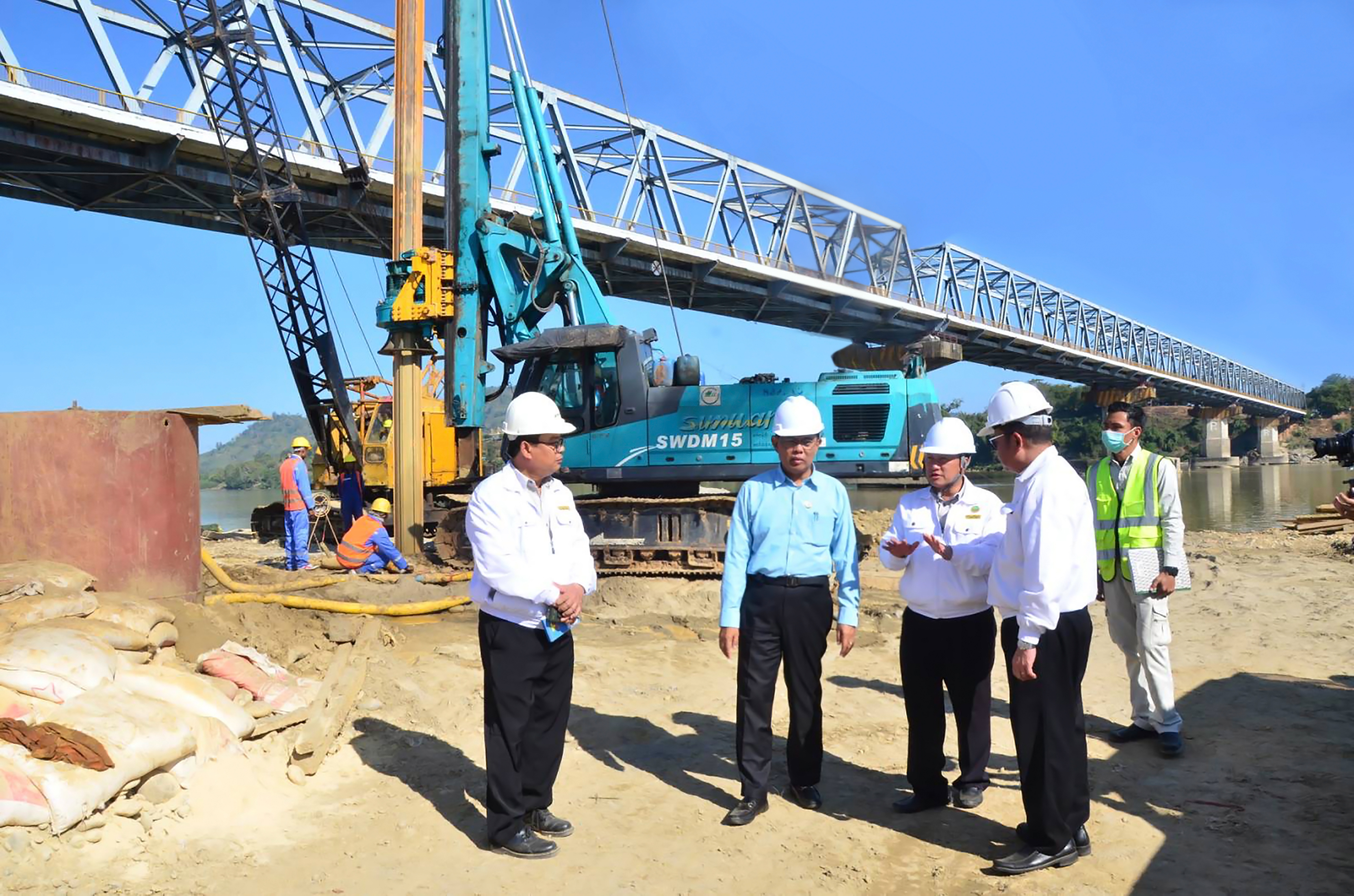 ဆောက်လုပ်ရေးဝန်ကြီးဌာန ၊ ပြည်ထောင်စုဝန်ကြီး ဦးမျိုးသန့်သည် ဌာနဆိုင်ရာ တာဝန်ရှိ သူများနှင့်အတူ  ယမန်နေ့က မန္တလေး - လားရှိုး - ဗန်းမော် - မြစ်ကြီးနားလမ်းပေါ်ရှိ  အရှည် (၃၂၁၂) ပေ ဗလမင်းထင်တံတား အမှတ်(၂) တည်ဆောက်ရေးလုပ်ငန်းများ ဆောင်ရွက်နေမှုတို့ကို ကြည့်ရှု စစ်ဆေးသည်။