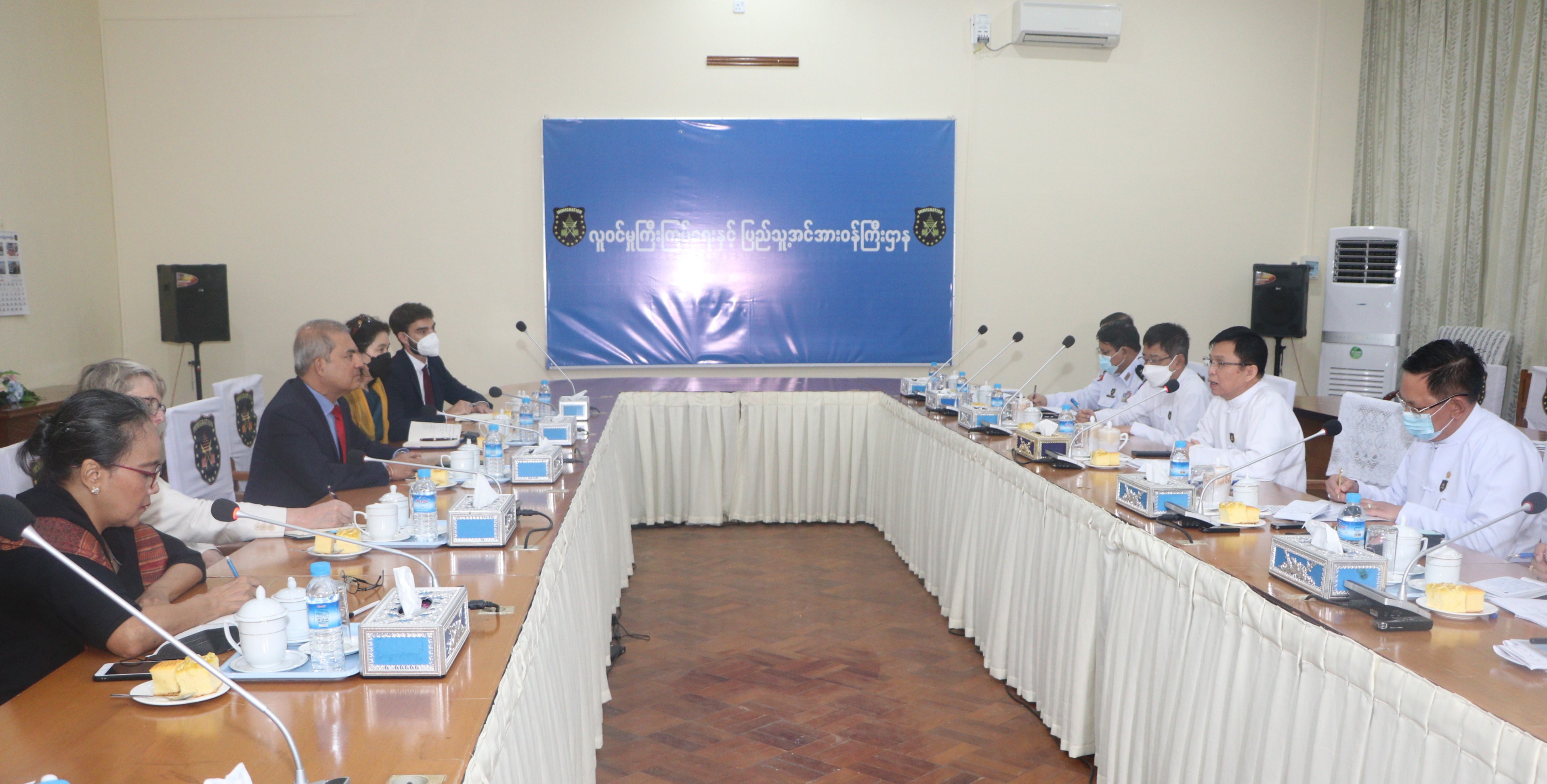 ထိုသို့တွေ့ဆုံစဉ် ဝန်ကြီးဌာနနှင့် UNDP-UNHCR တို့အကြား သုံးပွင့်ဆိုင် နားလည်မှုစာချွန်လွှာ (MoU) အပေါ် အကောင်အထည်ဖော်ဆောင်ရွက်နေမှု၊ နားလည်မှုစာချွန်လွှာအရ ဘူးသီးတောင်၊ မောင်တောဒေသအတွင်း လူသားချင်းစာနာထောက်ထားမှုဆိုင်ရာ အကူအညီပေးနိုင်ရေးအတွက် ခရီးသွားလာခွင့်နှင့် လုပ်ငန်းဆောင်ရွက်ခွင့် ခွင့်ပြုပေးနိုင်ရေးအတွက် ဌာနအနေဖြင့် ကန့်ကွက်ရန်မရှိသော်လည်း လုံခြုံရေးအခြေအနေအရ အကန့်အသတ်ရှိမှု၊ ဘင်္ဂလားဒေ့ရှ်နိုင်ငံသို့ နေရပ်စွန့်ခွာသွားသူများ ပြန်လည်လက်ခံနိုင်ရေးအတွက် နှစ်နိုင်ငံညှိနှိုင်းပူးပေါင်း ဆောင်ရွက်နေမှု၊ ပြန်လည်လက်ခံနိုင်ရေးအတွက် နေရပ်စွန့်ခွာသွားသူများ၏ အချက်အလက်များ ပေးပို့လာမှုအပေါ် မိမိဝန်ကြီးဌာနမှ စိစစ်တွေ့ရှိမှုနှင့် အကြောင်းပြန်ကြား ပြီးစီးမှု၊ မြန်မာ-ဘင်္ဂလားဒေ့ရှ် နှစ်နိုင်ငံမှ နည်းပညာလုပ်ငန်းအဖွဲ့များ၏ Online စနစ်ဖြင့် ညှိနှိုင်းဆွေးနွေး ဆောင်ရွက်နေမှုနှင့် Pilot Project ဆောင်ရွက်သွားမည့်အစီအစဉ်၊ နှစ်နိုင်ငံဆောင်ရွက်ချက်များအပေါ် အကြမ်းဖက် လက်နက်ကိုင်အဖွဲ့အစည်းများမှ ပျက်စီးစေရန် ရည်ရွယ်၍ နှောင့်ယှက်ဆောင်ရွက်နေမှု၊ မိမိနိုင်ငံသို့ ပြန်လည်ဝင်ရောက်လာမည့် သူများအတွက် အဆင်ပြေစွာနေထိုင်နိုင်ရေးနှင့် ရေရှည်ဘဝ ရပ်တည်ရှင်သန်နိုင်ရေးတို့အတွက် UNHCR အနေဖြင့် အပြုသဘောဆောင်သည့် ပံ့ပိုးကူညီမှုများပေးနိုင်ရေး အခြေအနေ၊ မြန်မာနိုင်ငံ၏ လက်ရှိဆောင်ရွက်နေမှုများအပေါ် နိုင်ငံတကာ အဖွဲ့အစည်းများမှ သိရှိနားလည်နိုင်ရေးအတွက် UNHCR အနေဖြင့် ကြိုးပမ်းဆောင်ရွက်ပေးနိုင်ရေးနှင့် ပြန်လည်လက်ခံရေး လုပ်ငန်းစဉ်များ အောင်မြင်ရေးအတွက် ဆက်လက်ပူးပေါင်း ဆောင်ရွက်နိုင်ရေး အခြေအနေများနှင့်စပ်လျဉ်း၍ ရင်းနှီးပွင့်လင်းစွာ အမြင်ချင်းဖလှယ် ဆွေးနွေးခဲ့ကြကြောင်း သိရသည်။