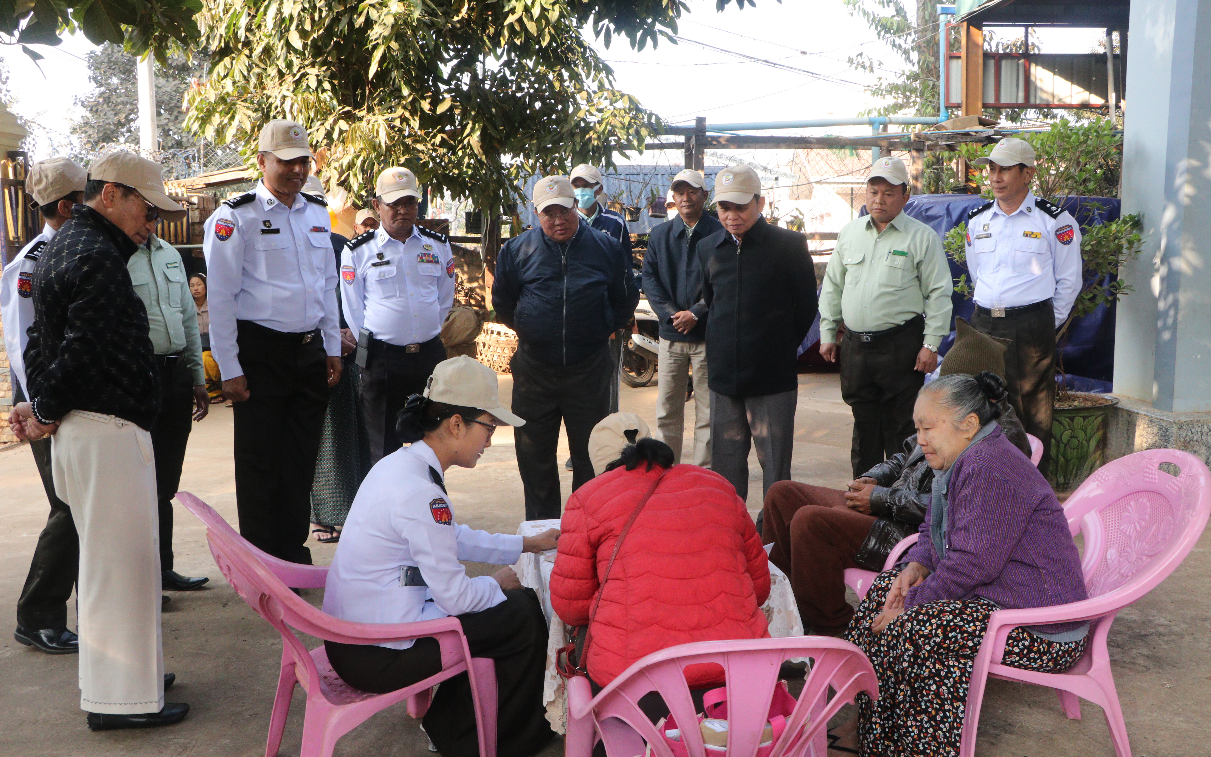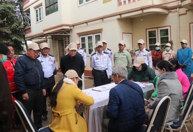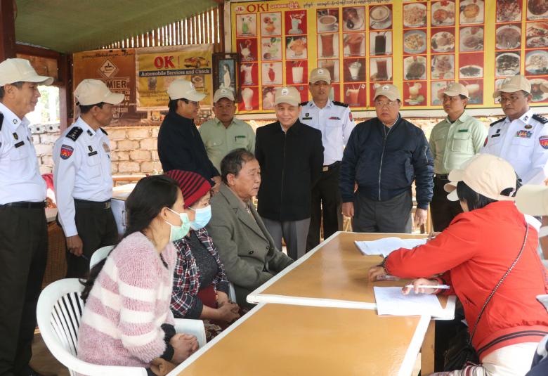 ယင်းနောက် ပြည်ထောင်စုဝန်ကြီးသည် လားရှိုး၊ ကျောက်မဲ၊ တန့်ယန်း၊ ကွတ်ခိုင် တို့မှ ခရိုင်နှင့်မြို့နယ် ဦးစီးဌာနမှူးများနှင့် ဝန်ထမ်းများကို လားရှိုးမြို့ လူဝင်မှုကြီးကြပ်ရေးနှင့် ပြည်သူ့အင်အားဝန်ကြီးဌာန ဒုတိယပြည်နယ်ဦးစီးမှူးရုံး၌ တွေ့ဆုံပြီး နိုင်ငံတော်တွင် နောင်ကျင်းပမည့် အထွေထွေရွေးကောက်ပွဲ၌ မဲပေးပိုင်ခွင့်ရှိသူ နိုင်ငံသားတိုင်း ကိုင်ဆောင်သင့်သည့် ကတ်ပြားတစ်မျိုးမျိုး ကိုင်ဆောင်မဲပေးနိုင်ရေးအတွက် နိုင်ငံသား ကတ် ထုတ်ပေးခြင်းလုပ်ငန်းကို နိုင်ငံတစ်ဝန်း ပန်းခင်းစီမံချက်ဖြင့် ကွင်းဆင်းဆောင်ရွက် ပေးလျက်ရှိကြောင်း၊ ကွင်းဆင်းဆောင်ရွက်ပေးရန် ကျန်ရှိသည့် “ဝ”အထူးဒေသအတွင်း ယခုအခါ မိမိဌာန ဝန်ထမ်းထုတ်နုတ်အင်အားဖြင့် နိုင်ငံသားကတ် ထုတ်ပေးခြင်းလုပ် ငန်းကို ကွင်းဆင်းဆောင်ရွက် ပေးလျက်ရှိကြောင်း၊ ယင်းဒေသအတွင်း လျာထားသတ်မှတ်ချက်အတိုင်း ပြည့်မှီပြီးစီးနိုင်ရေးအတွက် ဆက်လက်ကြိုးပမ်းဆောင်ရွက်သွားကြရမည် ဖြစ်ကြောင်း။