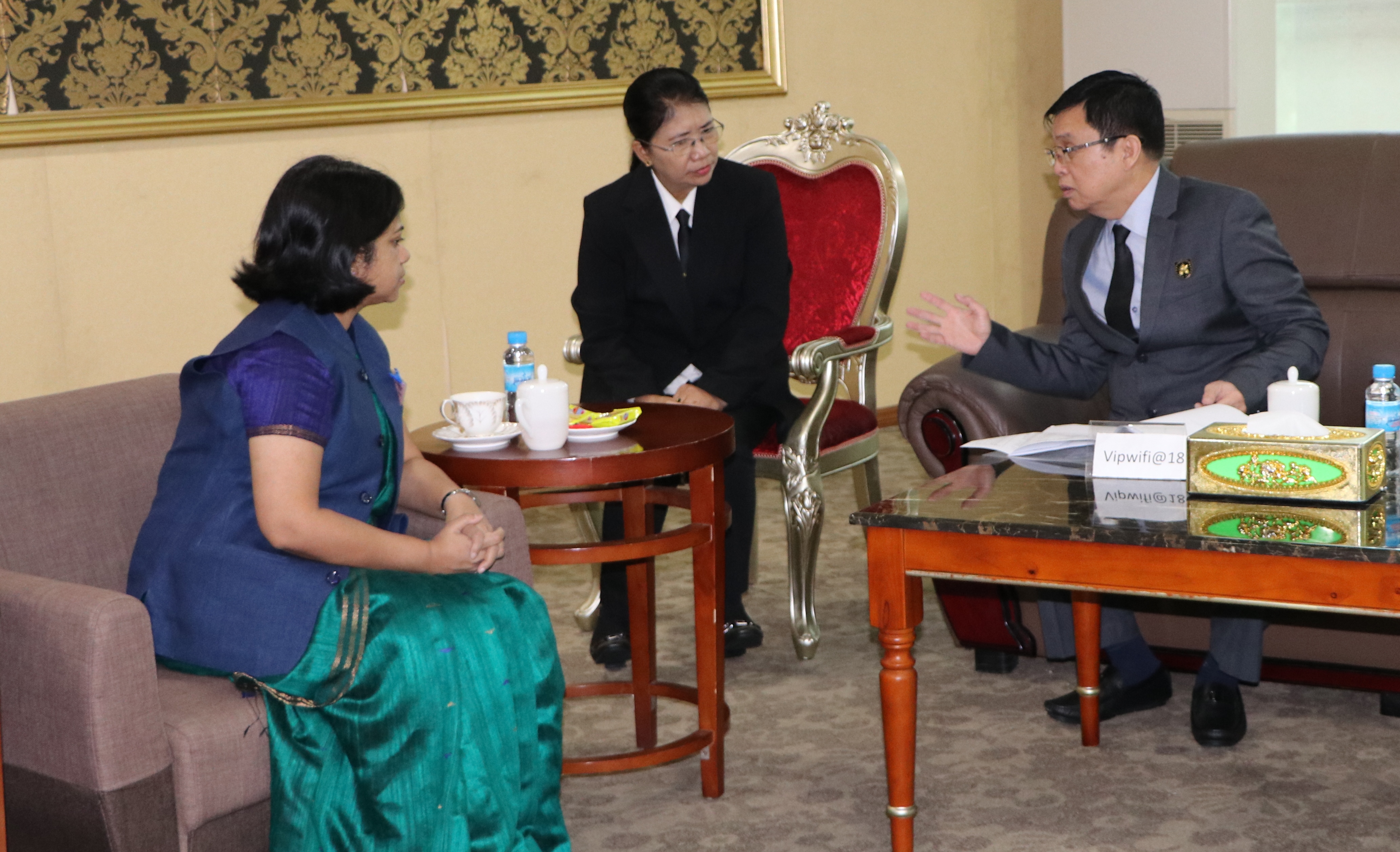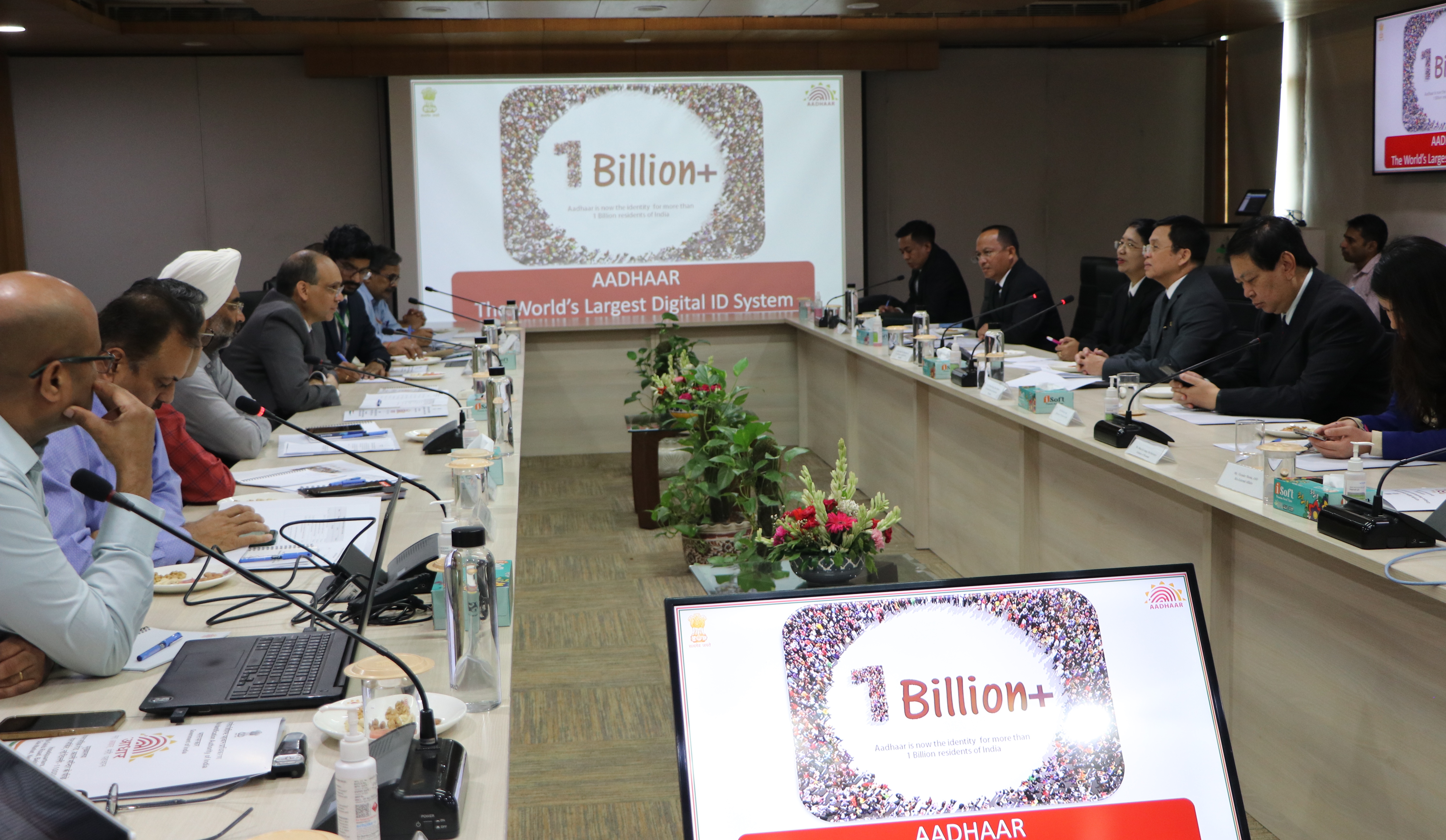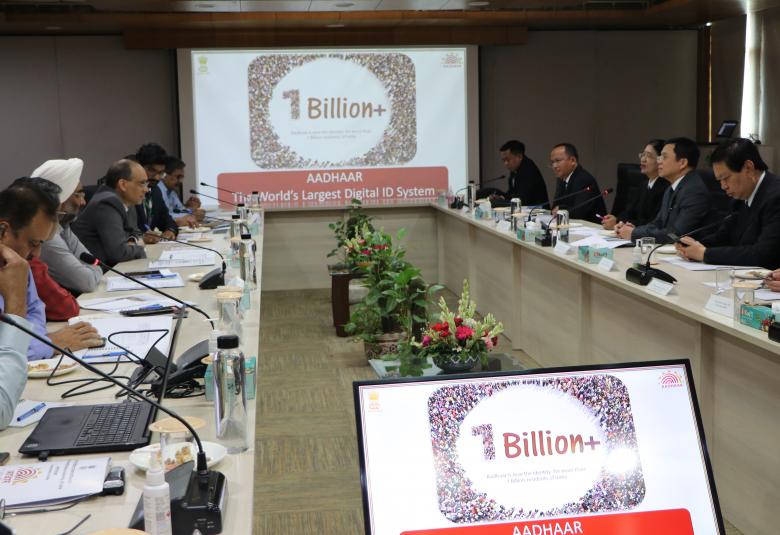 ဇူလိုင် ၂၅ ရက် နံနက်ပိုင်းတွင် ပြည်ထောင်စုဝန်ကြီးနှင့်အဖွဲ့သည် မြန်မာသံအမတ်ကြီး ဦးမိုးကျော်အောင်နှင့်အတူ နယူးဒေလီမြို့ရှိ အိန္ဒိယနိုင်ငံအစိုးရ၏ Unique Identification Authority of India (UIDAI) ရုံးချုပ်သို့ ရောက်ရှိရာ အမှုဆောင်အရာရှိချုပ် Mr. Amit Agrawal နှင့် တာဝန်ရှိသူများက UIDAI ၏ ဖွဲ့စည်းတည်ထောင်ထားရှိမှု၊ Aadhaar စနစ်အောင်မြင်ရေးအတွက် လုပ်ငန်းအဆင့်အလိုက် ကြိုးပမ်းဆောင်ရွက်ခဲ့မှု၊ Aadhaar စနစ်ဖြင့် အစိုးရ၊ အဖွဲ့အစည်းအသီးသီးနှင့် ပြည်သူများအား ထိရောက်သော ဝန်ဆောင်မှုများပေးနေမှု အခြေအနေများကို Powerpoint ဖြင့် ရှင်းလင်းပြောကြားကြသည်။