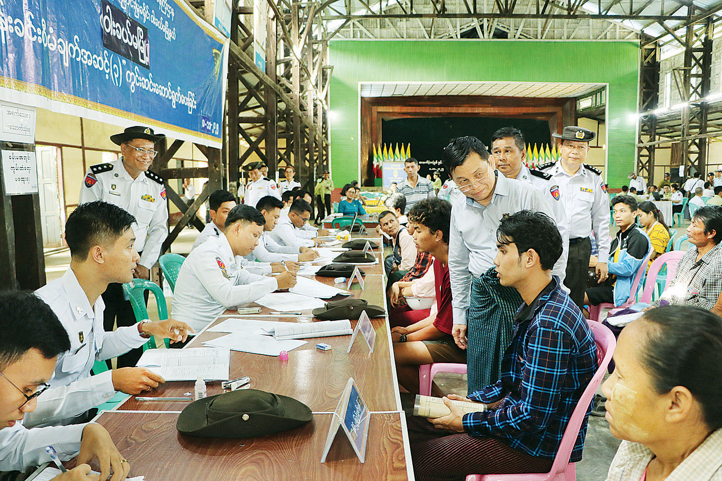 ဆက်လက်၍ ဝါးခယ်မမြို့ ရွှေခယ်သီရိခန်းမ၌ မြို့နယ်အထွေထွေအုပ်ချုပ်ရေးဦးစီးဌာန၊ မြို့နယ်ရွေးကောက်ပွဲကော်မရှင် အဖွဲ့ခွဲနှင့် လူဝင်မှုကြီးကြပ်ရေးနှင့် ပြည်သူ့အင်အားဝန်ကြီးဌာန မြို့နယ်ဦးစီးမှူးရုံးတို့မှ ဝန်ထမ်းများစုပေါင်း၍ မဲစာရင်းမှန်ကန်ရေးအတွက် မြေပြင်လူဦးရေ တိုက်ဆိုင် စိစစ်ဆောင်ရွက်နေမှု၊ လူဝင်မှုကြီးကြပ်ရေးနှင့် ပြည်သူ့အင်အားဝန်ကြီးဌာနဝါးခယ်မမြို့နယ် ဦးစီးမှူးရုံးမှ ဝန်ထမ်းများကအိမ်ထောင်စု လူဦးရေစာရင်းနှင့်နိုင်ငံသားစိစစ်ရေးကတ် ပျက်စီး/ ပျောက်ဆုံးသွားသည့် ဒေသခံပြည်သူများနှင့် နိုင်ငံသား စိစစ်ရေးကတ် မရရှိသေးသည့် ပြည်သူများကို ပန်းခင်းစီမံချက် အဆင့်(၃)ဖြင့် ဆောင်ရွက် ပေးနေမှု၊ နိုင်ငံသားကတ်ရရှိပြီးသူများကို e-ID စနစ်ဖြင့် Biographic/Biometric ကောက် ယူကာ Unique ID နံပါတ် ထုတ်ပေးနေမှုကို ကြည့်ရှုအားပေးကာ လုပ်ငန်းလိုအပ်ချက်များ ညှိနှိုင်း ဆောင်ရွက်ပေးသည်။