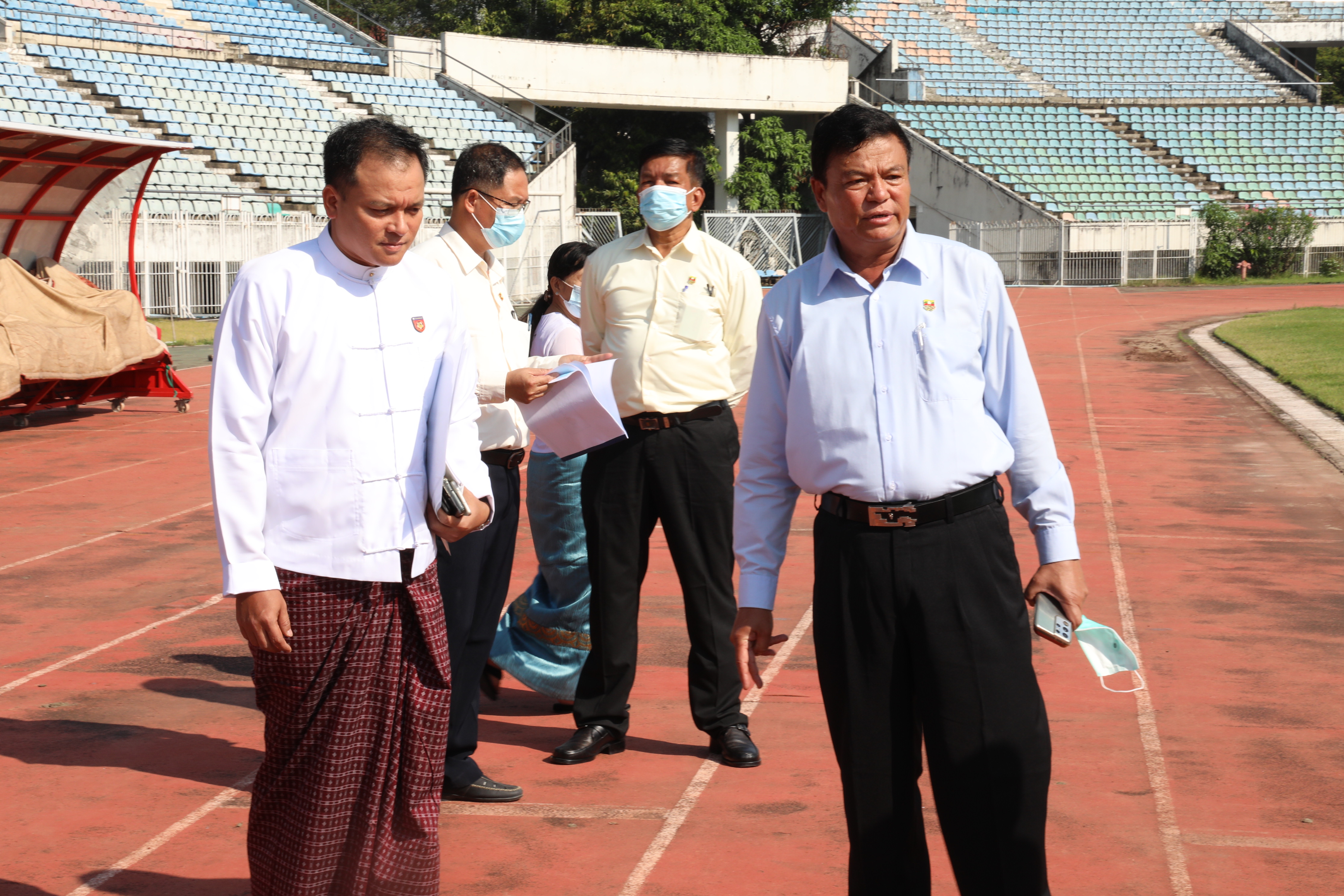ဦးစွာ အောင်ဆန်းအားကစား ပြိုင်ဝင်းအတွင်းရှိ ပျက်စီးနေသော ပွဲကြည့်စင် အဆောက်အဦအနေအထားများ၊ ခြံစည်းရိုးများ၊ ဘောလုံးကွင်းနှင့် ဘော်လီဘောလေ့ကျင့်ရုံ အနေအထားများ၊ ပြင်ဆင်ရန်လိုအပ်သည့် အနေအထားများကို ကြည့်ရှုစစ်ဆေးပြီး လိုအပ်သည်များကို တာဝန်ရှိသူများကို မှာကြားသည်။