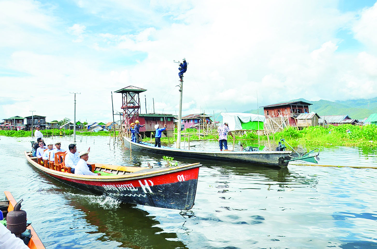 လျှပ်စစ်စွမ်းအား ဝန်ကြီးဌာန ပြည်ထောင်စုဝန်ကြီး ဦးဉာဏ်ထွန်းသည် ရှမ်းပြည်နယ်ဝန်ကြီးချုပ် ဦးအောင်အောင်၊ ဌာနဆိုင်ရာတာဝန်ရှိသူများနှင့်အတူ ယနေ့နံနက်ပိုင်းတွင် ရှမ်းပြည်နယ် (တောင်ပိုင်း) ညောင်ရွှေမြို့နယ်ရှိ အထက်ဘီလူးချောင်း ရေအားလျှပ်စစ်စီမံကိန်း၏ လုပ်ငန်းဆောင်ရွက်ထားရှိမှုနှင့် မန္တလေး ငလျင်ကြီးကြောင့် အင်းလေးဒေသ ကျေးရွာများအတွင်းရှိ ပျက်စီးသွားသည့် ဓာတ်အားလိုင်းများ၊ ထရန်စဖော်မာများနှင့် ဓာတ်အားလွှတ်ပစ္စည်းများ ပြန်လည်ပြုပြင် ဆောင်ရွက်ပြီးစီးမှုနှင့် ပြုပြင်ခြင်း လုပ်ငန်းများ ဆောင် ရွက်နေမှု အခြေအနေတို့ကို သွားရောက်ကြည့်ရှု စစ်ဆေးသည်။