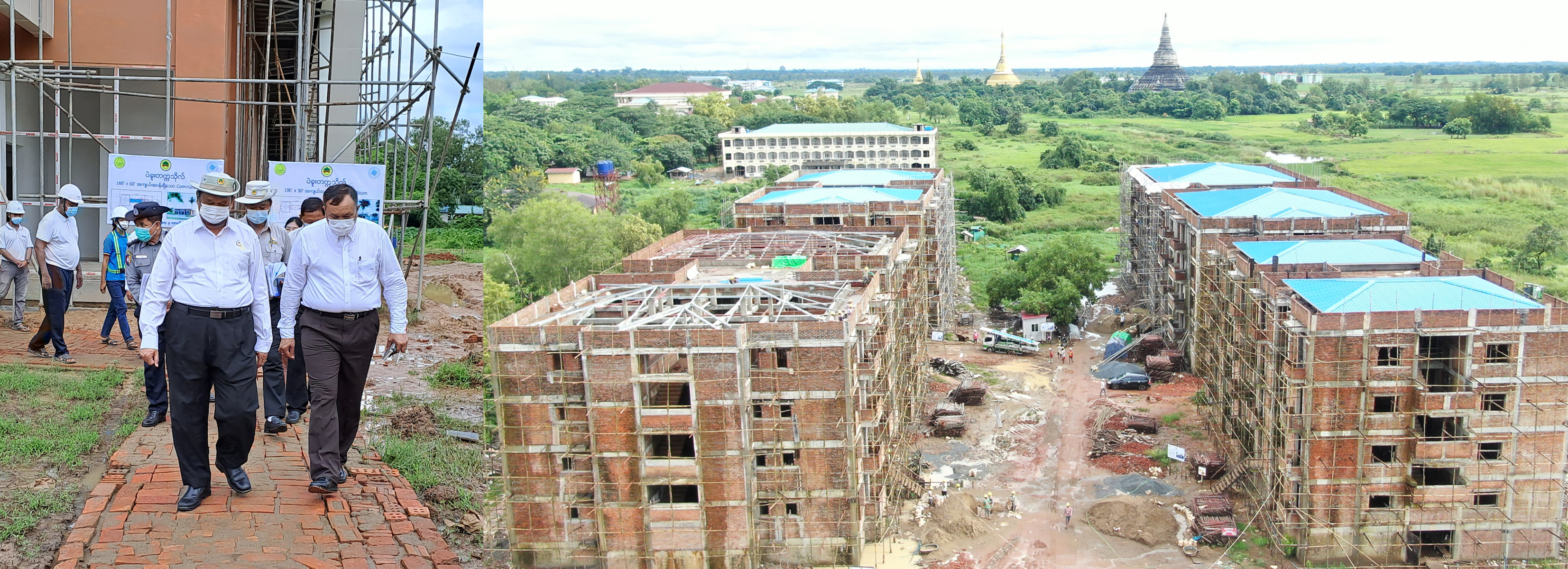 ယင်းနောက် ပြည်ထောင်စုဝန်ကြီးနှင့်အဖွဲ့သည် ပဲခူးတိုင်းဒေသကြီးအစိုးရအဖွဲ့ လမ်းပန်း ဆက်သွယ်ရေးဝန်ကြီး ရဲမှူးကြီး ကျော်ထွဋ်နှင့်အတူ ပဲခူးမြို့ရှိ ပညာ့ရိပ်သာအိမ်ရာစီမံကိန်းသို့ ရောက်ရှိရာ တာဝန်ရှိသူများက လုပ်ငန်းဆောင်ရွက်နေမှုကို ရှင်းလင်းတင်ပြပြီး ပြည်ထောင်စု ဝန်ကြီးက တည်ဆောက်ရေးလုပ်ငန်းများ ၂၀၂၂ ခုနှစ်၊ ဒီဇင်ဘာလအတွင်း အချိန်မီပြီးစီးရေး တွန်းအားပေး ဆောင်ရွက်ရန်လိုပါကြောင်း၊ လက်ရာသေသပ် ကောင်းမွန်ပြီး အရည်အသွေးပြည့် မီရန် အထူးအလေးထား ဆောင်ရွက်ရန်မှာကြားပြီး အဆောက်အဦများကို ကြည့်ရှုစစ်ဆေးသည်။