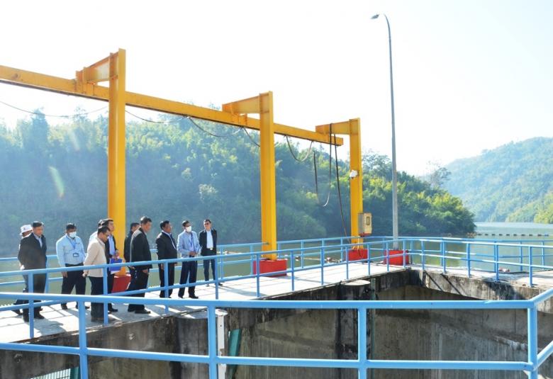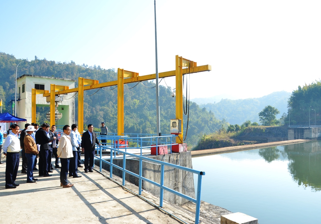 ရှေးဦးစွာ ပြည်ထောင်စုဝန်ကြီးနှင့်အဖွဲ့သည် နန်ချိုရေအားလျှပ်စစ်ဓာတ်အားပေး စက်ရုံ၏ ရေထိန်းတမံနှင့် ရေယူအဆောက်အအုံသို့ရောက်ရှိပြီး ရေဝင်ရောက်မှု၊ ရေသို လှောင်ထားရှိမှုတို့ကို ကြည့်ရှုစစ်ဆေးသည်။ ရေထိန်းတမံသည် အမြင့် ၁၆၇ ပေရှိသော တိုက်ရိုက်ရေသွယ်စနစ် (Run Off River Type) CVC ကွန်ကရစ် တမံအမျိုးအစားဖြစ်ကာ အကျယ် ၃၄၉ ပေရှိ ရေပိုလွှဲနှင့် သဲနုန်းထုတ်ပေါက်တံခါးတို့ကို ထည့်သွင်းတည်ဆောက်ထား သည်။ အဆိုပါ ရေထိန်းတမံမှ ရေကိုရေယူအဆောက်အအုံ့မှတဆင့် ရေသွယ်ဥမင်လိုဏ် အလျား ပေ ၇၃၃၀ အရှည်ဖြင့် သယ်ယူပြီး ယခုကာလတွင် တစ်နေ့လျင် (၂)ကြိမ် ရေထိန်း ကန်သို့ ပို့လွှတ်လျက်ရှိသည်။