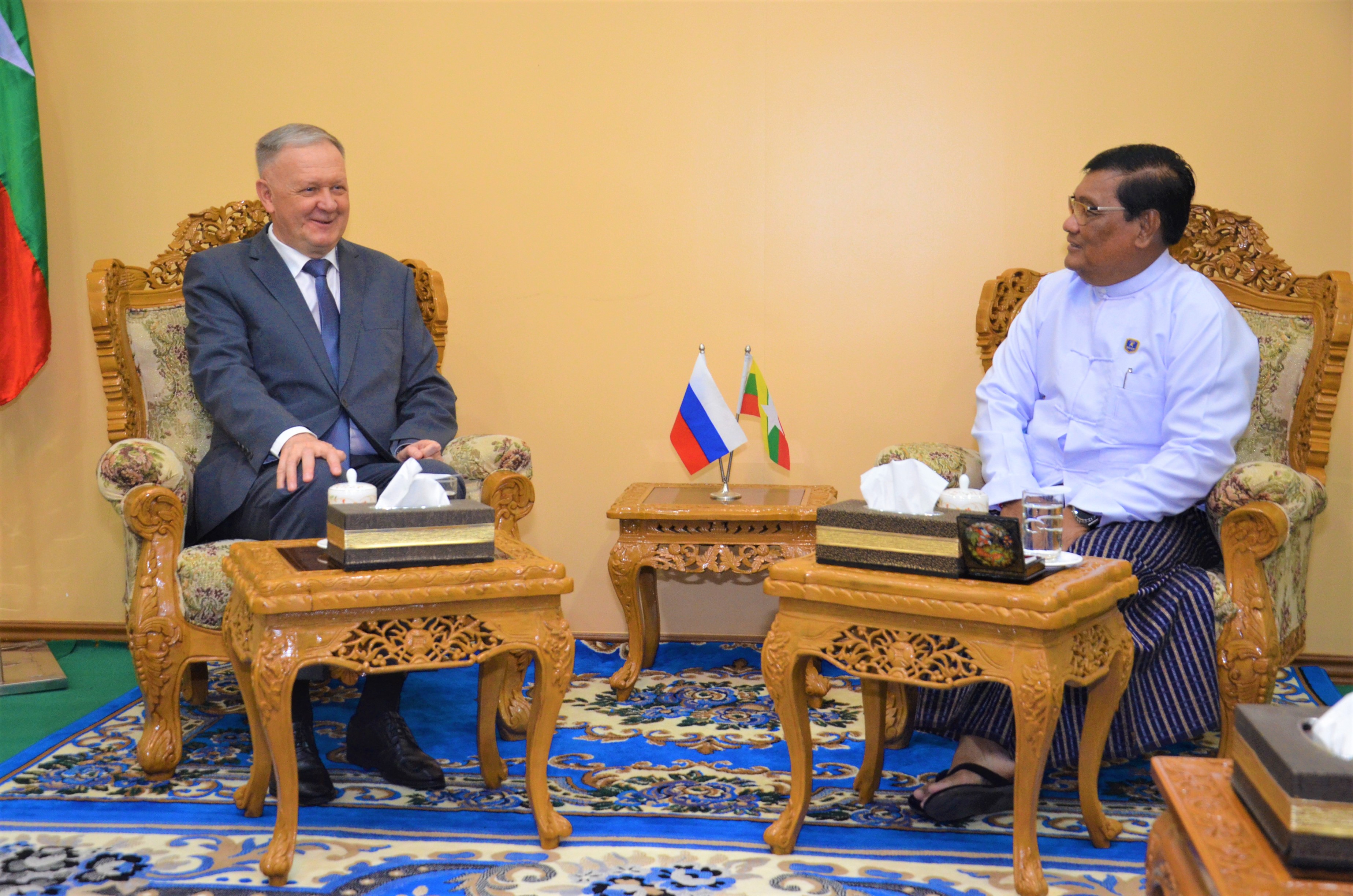 လျှပ်စစ်စွမ်းအားဝန်ကြီးဌာန ပြည်ထောင်စုဝန်ကြီး ဦးသောင်းဟန် သည် တာဝန်ပြီးဆုံး၍ ပြန်လည်ထွက်ခွာမည့် မြန်မာနိုင်ငံဆိုင်ရာ ရုရှားသံအမတ်ကြီး H.E. Dr. Nikolya Listopadov အား ယနေ့နံနက် ၁၁ နာရီတွင် လျှပ်စစ်စွမ်းအားဝန်ကြီးဌာန ပြည်ထောင်စုဝန်ကြီး၏ ဧည့်ခန်းမ၌ လက်ခံတွေ့ဆုံခဲ့သည်။
