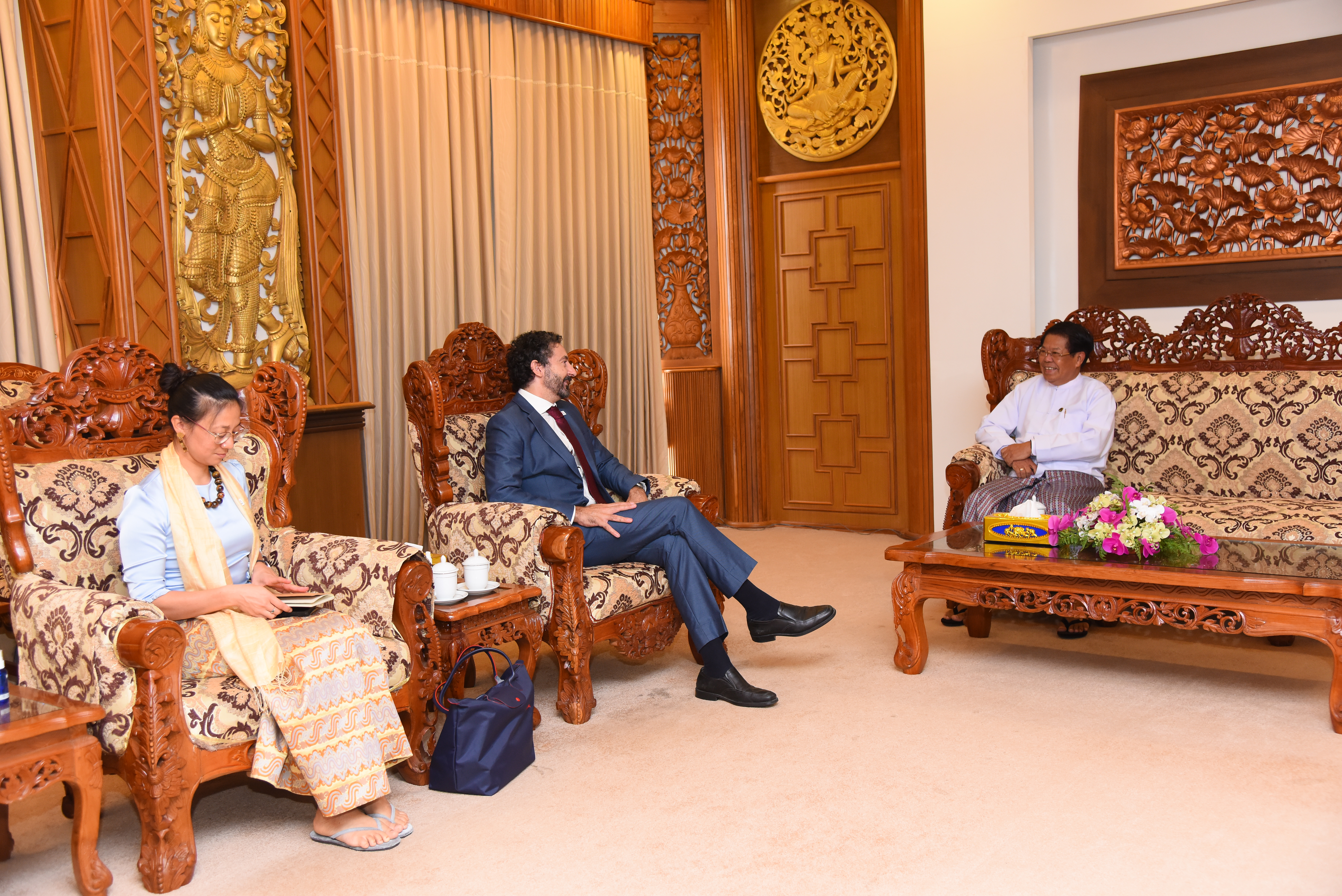 နိုင်ငံခြားရေးဝန်ကြီးဌာန၊ ပြည်ထောင်စုဝန်ကြီး ဦးသန်းဆွေသည် အပြည်ပြည်ဆိုင်ရာ ကြက်ခြေနီနှင့် လခြမ်းနီအသင်းများဖက်ဒရေးရှင်း (IFRC) ၏ အာရှပစိဖိတ်ဒေသဆိုင်ရာ ညွှန်ကြားရေးမှူး Mr. Alexander James Matheou ကို ယနေ့ နံနက် ၁၀ နာရီတွင် နေပြည်တော်ရှိ နိုင်ငံခြားရေးဝန်ကြီးဌာန၌ လက်ခံတွေ့ဆုံသည်။