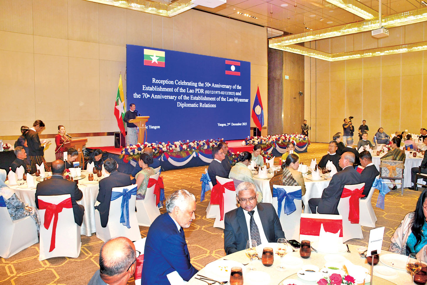 လာအိုပြည်သူ့ဒီမိုကရက်တစ်သမ္မတနိုင်ငံ တည်ထောင်သည့် နှစ်(၅၀)ပြည့် နှစ်ပတ်လည်နှင့် မြန်မာ-လာအို နှစ်နိုင်ငံအကြား သံတမန်ဆက်ဆံရေးထူထောင်မှု နှစ်(၇၀)ပြည့် နှစ်ပတ်လည်အထိမ်းအမှတ် ဧည့်ခံပွဲအခမ်းအနားကို ယနေ့ညနေ ၆ နာရီခွဲတွင် ရန်ကုန်မြို့ Pan Pacific Hotel ၌ ကျင်းပရာ နိုင်ငံခြားရေးဝန်ကြီးဌာန ပြည်ထောင်စုဝန်ကြီး ဦးသန်းဆွေ တက်ရောက်သည်။