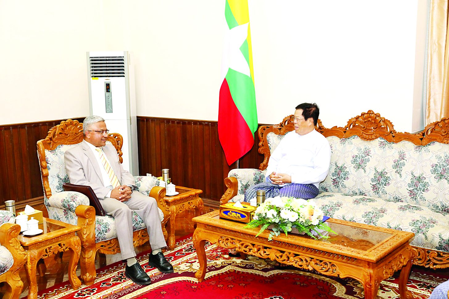 ထိုသို့တွေ့ဆုံစဉ် နှစ်နိုင်ငံဆက်ဆံရေးနှင့် နှစ်နိုင်ငံအကျိုးဖြစ်ထွန်းစေမည့် ကိစ္စရပ်များတွင် ပူးပေါင်း ဆောင်ရွက်မှုတိုးမြှင့်ရေး ဆွေးနွေးခဲ့ကြကြောင်း သိရသည်။