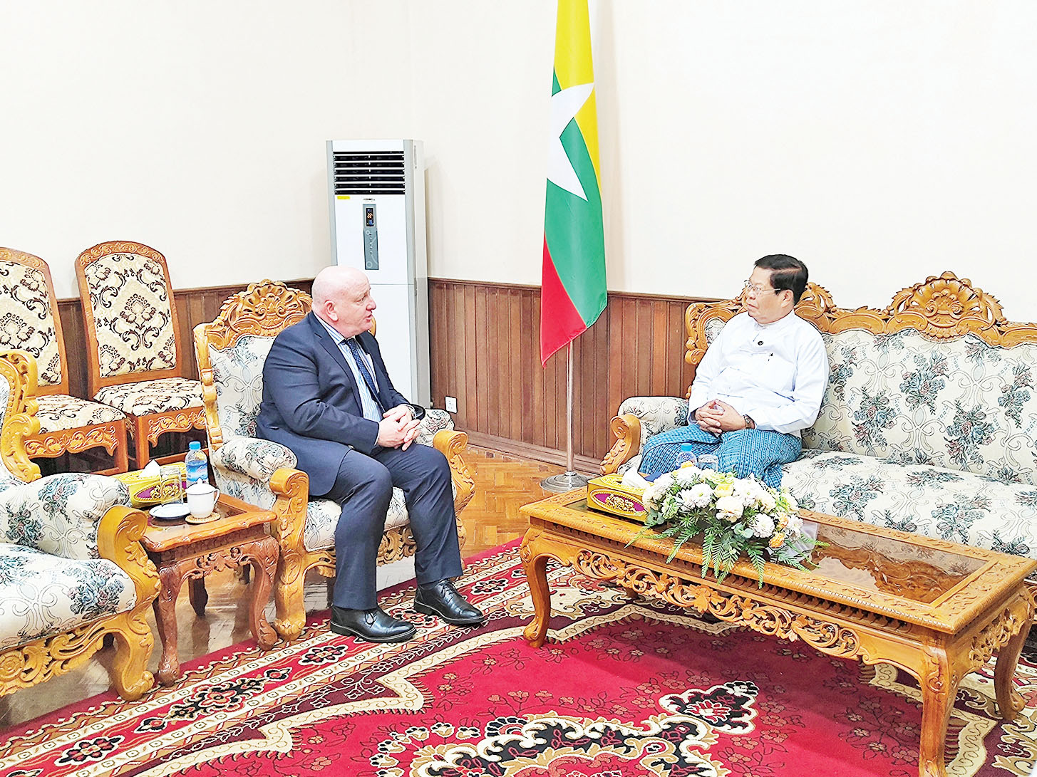 နိုင်ငံခြားရေးဝန်ကြီးဌာန ပြည်ထောင်စုဝန်ကြီး ဦးသန်းဆွေသည် မြန်မာနိုင်ငံရှိ ကုလသမဂ္ဂ လူသားချင်းစာနာမှုဆိုင်ရာညှိနှိုင်းရေးရုံး (UNOCHA)၏အကြီးအကဲ Mr. Justin Brady အား ယနေ့မွန်းလွဲ ၃ နာရီတွင် နေပြည်တော်ရှိ နိုင်ငံခြားရေးဝန်ကြီးဌာန၌ လက်ခံတွေ့ဆုံသည်။