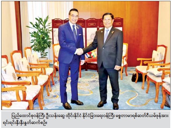 (၁၀) ကြိမ်မြောက် မဲခေါင်-လန်ချန်း ပူးပေါင်းဆောင်ရွက်မှု နိုင်ငံခြားရေးဝန်ကြီးများ အစည်းအဝေးနှင့် ဆက်စပ်အစည်းအဝေးတက်ရောက်ရန် တရုတ်ပြည်သူ့သမ္မတနိုင်ငံ အန်းနင်မြို့၌ ရောက်ရှိနေသည့် နိုင်ငံခြားရေးဝန်ကြီးဌာန ပြည်ထောင်စုဝန်ကြီး ဦးသန်းဆွေသည် ထိုင်းနိုင်ငံ နိုင်ငံခြားရေးဝန်ကြီး မစ္စတာမာရစ်ဆတ်ငီယမ်ဖုန်အား ဒေသစံတော်ချိန် ယနေ့ညနေ ၃ နာရီတွင်လည်းကောင်း၊ တရုတ်ကွန်မြူနစ်ပါတီ ဗဟိုကော်မတီ နိုင်ငံရေးဗျူရိုအဖွဲ့ဝင်နှင့် နိုင်ငံခြားရေးဝန်ကြီး မစ္စတာဝမ်ယိအား ဒေသစံတော်ချိန် ညနေ ၅ နာရီ မိနစ် ၂၀ တွင်လည်းကောင်း သီးခြားစီတွေ့ဆုံသည်။