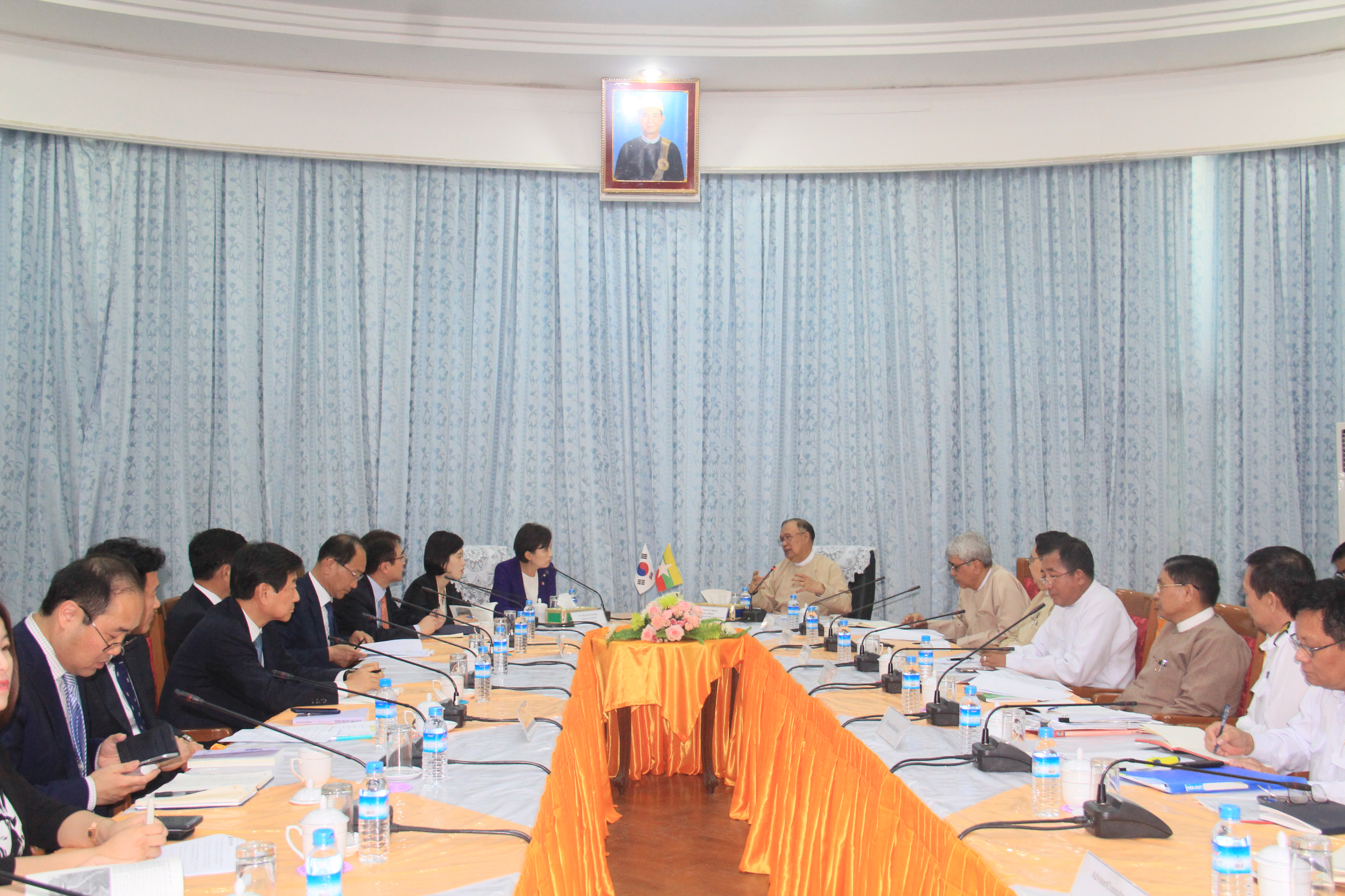 ထိုသို့တွေ့ဆုံစဉ် ကိုရီးယားသမ္မတနိုင်ငံမှ ခေတ်မီလူစီးရထားတွဲဝယ်ယူရေးဆိုင်ရာ ကိစ္စရပ်များ၊ မန္တလေး-မြစ်ကြီးနား ရထားလမ်းအဆင့်မြှင့်တင်ရေးအတွက် ဆောင်ရွက်နေမှုများ၊ တွံ့တေး တူးမြောင်းဖွံ့ဖြိုးရေးစီမံကိန်း အကောင်အထည်ဖော်ဆောင်ရွက်နေမှုများ၊ လေကြောင်းပို့ဆောင်ရေး ကဏ္ဍတွင် ပူးပေါင်းဆောင်ရွက်နေမှုများနှင့် အနာဂတ်တွင် ပူးပေါင်းဆောင်ရွက်မည့် ကိစ္စရပ်များအပေါ် ဆွေးနွေးညှိနှိုင်းအမြင်ချင်းဖလှယ်ခဲ့ကြသည်။