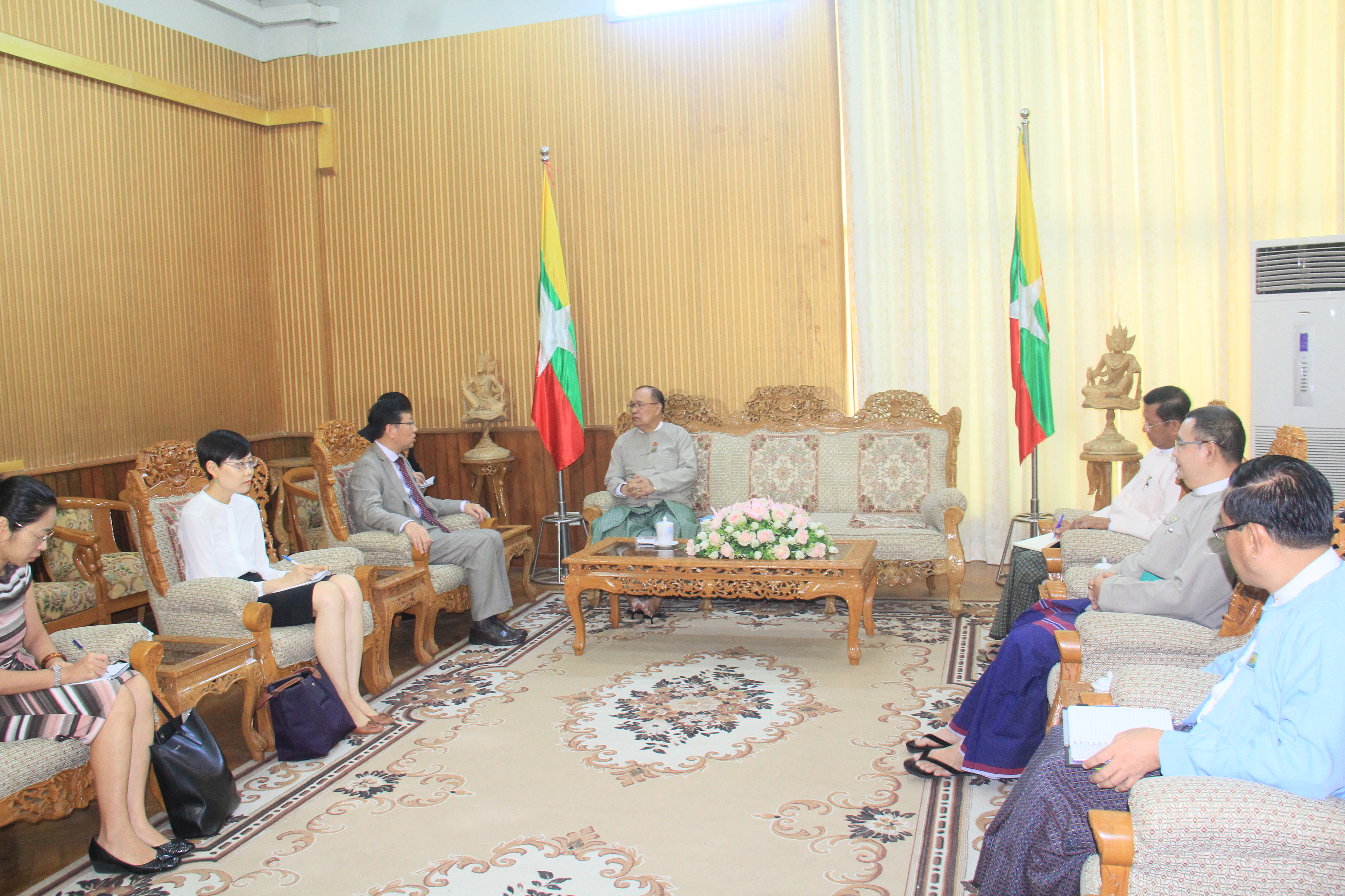 ပို့ဆောင်ရေးနှင့် ဆက်သွယ်ရေးဝန်ကြီးဌာန ပြည်ထောင်စုဝန်ကြီး ဦးသန့်စင်မောင်သည် ယနေ့နံနက်ပိုင်းတွင် တာဝန်ပြီးဆုံး၍ ပြန်လည်ထွက်ခွာတော့မည့်  မြန်မာနိုင်ငံဆိုင်ရာ တရုတ်ပြည်သူ့သမ္မတနိုင်ငံ သံအမတ်ကြီး မစ္စတာ ဟုန်လျန်အား  နေပြည်တော်ရှိ ပို့ဆောင်ရေးနှင့် ဆက်သွယ်ရေးဝန်ကြီးဌာန၌ တွေ့ဆုံသည်။