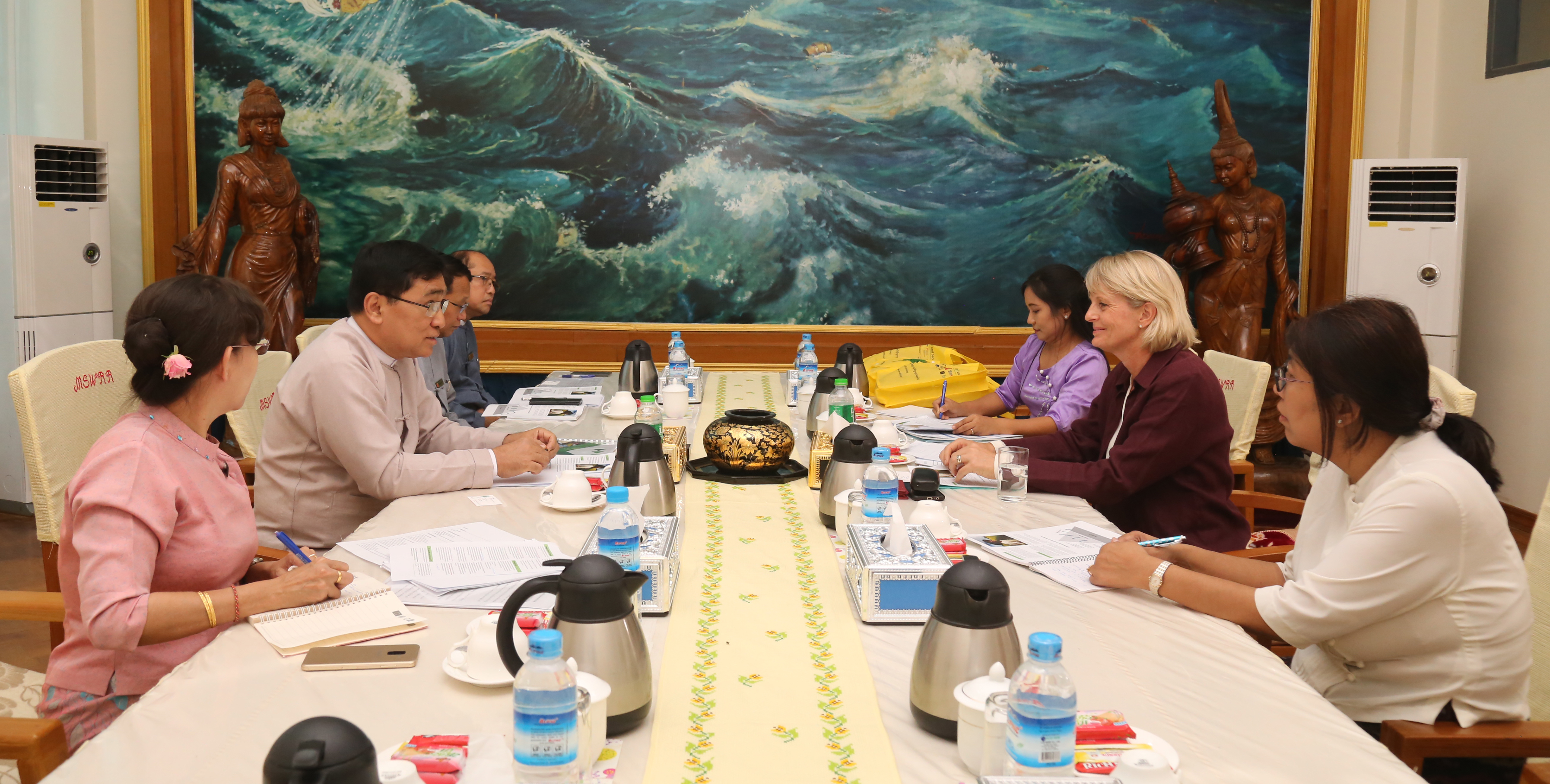 လူမှုဝန်ထမ်း၊ကယ်ဆယ်ရေးနှင့် ပြန်လည်နေရာချထားရေးဝန်ကြီးဌာန ပြည်ထောင်စုဝန်ကြီး ဒေါက်တာဝင်းမြတ်အေးသည် အသက်မွေးမှုနှင့် စားနပ်ရိက္ခာဖူလုံရေးရန်ပုံငွေအဖွဲ့ (Livelihoods and Food Security Trust Fund - LIFT Fund)အား စီမံခန့်ခွဲလျက်ရှိသော UNOPS Myanmar မှ ညွှန်ကြားရေးမှူး Ms. Katy Webley နှင့်အဖွဲ့အား ယနေ့မွန်းလွဲပိုင်းတွင် အဆိုပါ ဝန်ကြီးရုံး မေခလာခန်းမ၌်တွေ့ဆုံသည်။