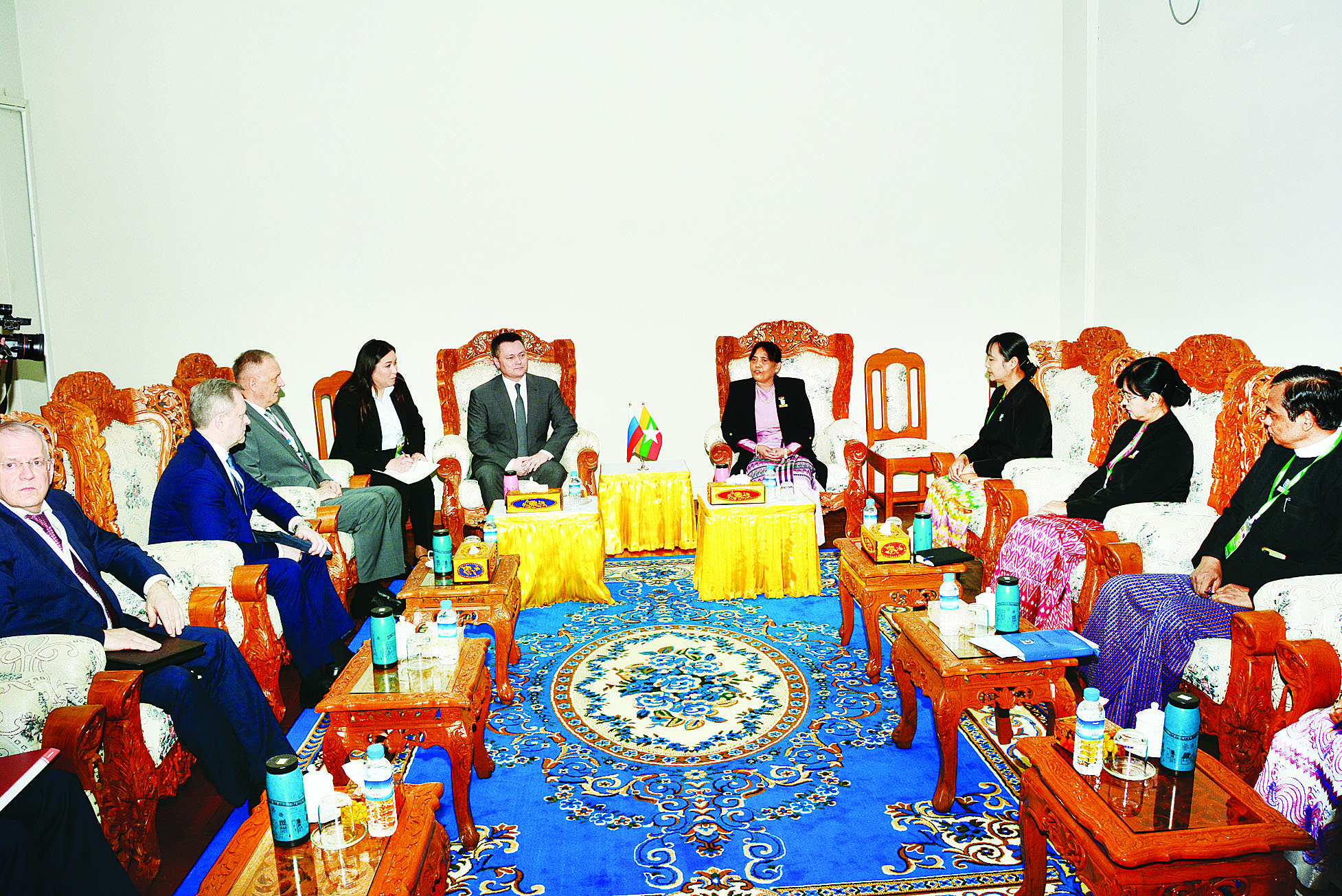 ဥပဒေရေးရာဝန်ကြီးဌာန ပြည်ထောင်စုဝန်ကြီးနှင့် ပြည်ထောင်စုရှေ့နေချုပ် ဒေါက်တာ သီတာဦးသည် ရုရှား ဖက်ဒရေးရှင်းနိုင်ငံ ရှေ့နေချုပ် Mr.Igor KRASNOV ဦးဆောင်သော ကိုယ်စားလှယ်အဖွဲ့ကို ယနေ့ နံနက် ၉ နာရီခွဲတွင် နေပြည်တော်ရှိ ဥပဒေရေးရာဝန်ကြီးဌာန သံတမန်ခန်းမ၌ တွေ့ဆုံသည်။