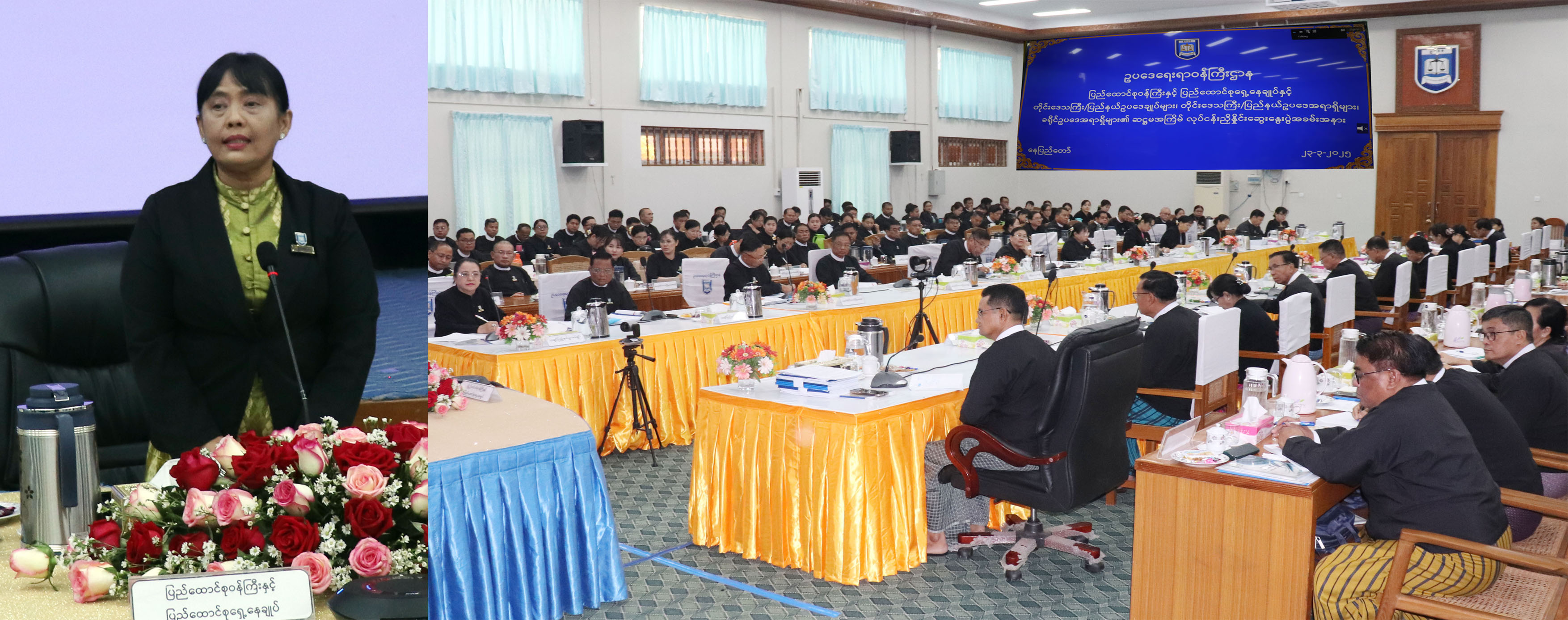 ဥပဒေရေးရာဝန်ကြီးဌာန ပြည်ထောင်စုဝန်ကြီးနှင့် ပြည်ထောင်စုရှေ့နေချုပ် ဒေါက်တာ သီတာဦးသည် တိုင်းဒေသကြီး၊ ပြည်နယ်ဥပဒေချုပ်များ၊ တိုင်းဒေသကြီး၊ ပြည်နယ်ဥပဒေ အရာရှိများ၊ ခရိုင်ဥပဒေအရာရှိများအား ယနေ့နံနက်ပိုင်းတွင် နေပြည်တော်ရှိ ဥပဒေရေးရာ ဝန်ကြီးဌာန၌ တွေ့ဆုံသည်။