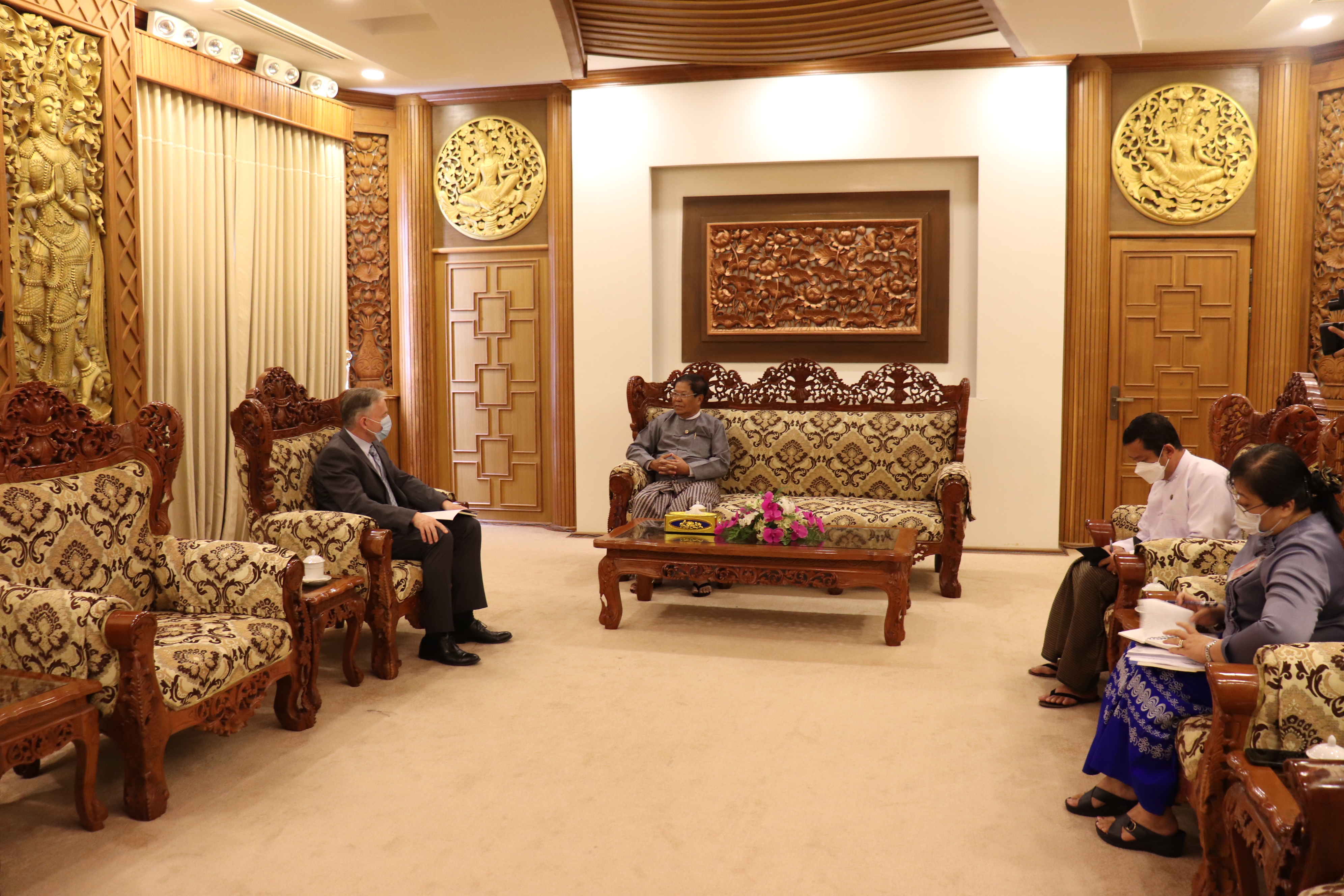 နိုင်ငံခြားရေးဝန်ကြီးဌာန ပြည်ထောင်စုဝန်ကြီး ဦးသန်းဆွေသည် ကမ္ဘာ့စားနပ်ရိက္ခာ အစီအစဉ် ရုံး (WFP) ၏ မြန်မာနိုင်ငံဆိုင်ရာ ညွှန်ကြားရေးမှူးနှင့် ဌာနေကိုယ်စားလှယ် Mr. Stephen Anderson ကိုယနေ့ နံနက် ၁၀ နာရီတွင် နေပြည်တော်ရှိ နိုင်ငံခြားရေးဝန်ကြီး ဌာန၌ လက်ခံတွေ့ဆုံသည်။
