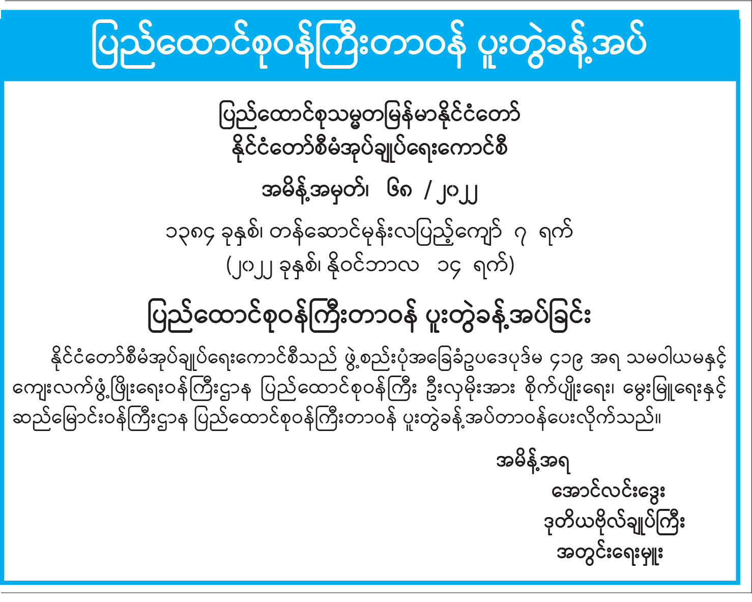 ပြည်ထောင်စုဝန်ကြီးတာဝန် ပူးတွဲခန့်အပ်