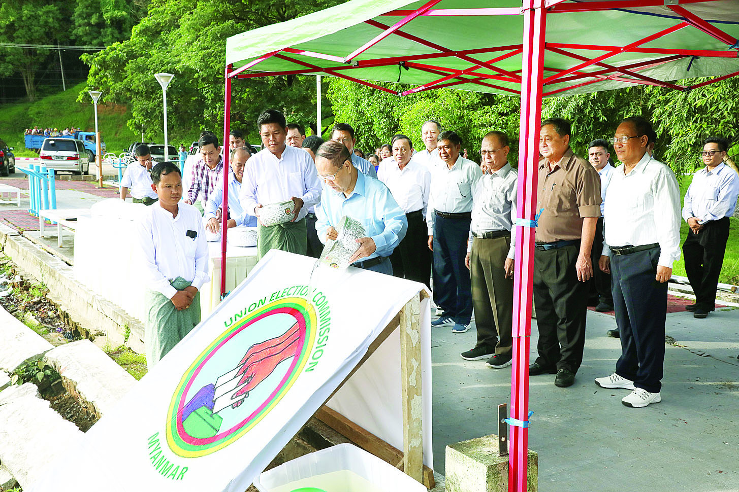 ပြည်ထောင်စု ရွေးကောက်ပွဲကော်မရှင် မိုးရာသီ ငါးမျိုးစိုက်ထည့်ပွဲ အခမ်းအနားကို ယနေ့ ညနေပိုင်းတွင် နေပြည်တော်ကောင်စီ နယ်မြေ ဇမ္ဗူသီရိမြို့နယ် ပျဉ်းမနား - တောင်ညိုလမ်းဘေး ရှိ မင်္ဂလာကန်အမှတ် (၁) ၌ ကျင်းပရာ ပြည်ထောင်စု ရွေးကောက်ပွဲကော်မရှင် ဥက္ကဋ္ဌ ဦးကိုကို၊ ဒုတိယဥက္ကဋ္ဌ ဦးသန်းစိုး နှင့်ကော်မရှင်အဖွဲ့ဝင်များ၊ ပြည်ထောင်စု ရွေးကောက်ပွဲ ကော်မရှင်ရုံး တာဝန်ရှိသူများနှင့် ဝန်ထမ်းမိသားစုဝင်များ တက် ရောက်ကြသည်။