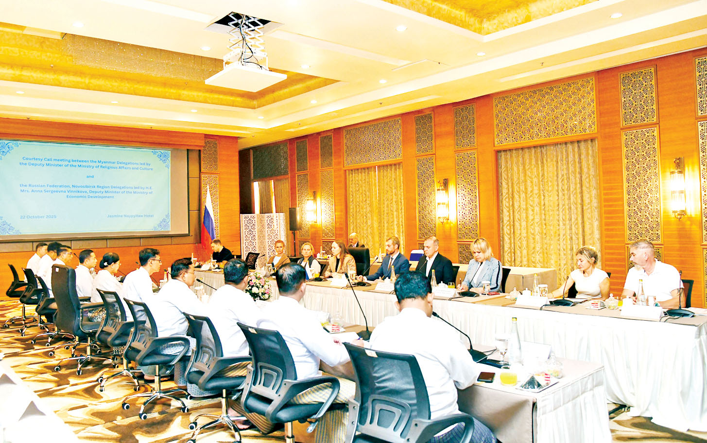 ပြည်ထောင်စုဝန်ကြီးဌာနများမှ ဒုတိယဝန်ကြီးများနှင့် ရုရှားဖက်ဒရေးရှင်းနိုင်ငံ နိုဗိုစီဗစ်ဒေသဆိုင်ရာ စီးပွားရေးဖွံ့ဖြိုးတိုးတက်မှုဝန်ကြီးဌာန ဒုတိယဝန်ကြီး မစ္စအန်နာဆာဂျီယဲဗ်နာ့ ဗင်နီကော့ဗာ ဦးဆောင်သော ကိုယ်စားလှယ်အဖွဲ့တို့သည် ယနေ့မွန်းလွဲပိုင်းတွင် နေပြည်တော်ရှိ Jasmin Naypyitaw Hotel ၌တွေ့ဆုံ ဆွေးနွေးကြသည်။