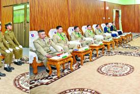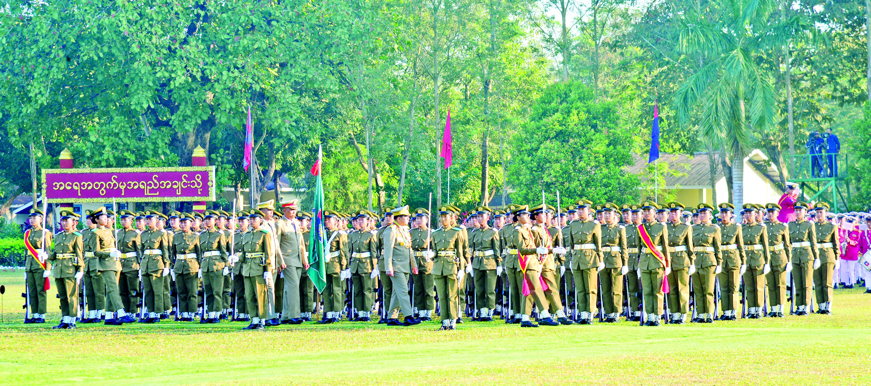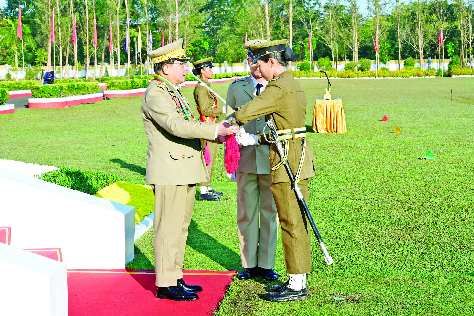 ထို့နောက် နိုင်ငံတော်လုံခြုံရေးနှင့် အေးချမ်းသာယာရေးကော်မရှင် ဥက္ကဋ္ဌ တပ်မတော်ကာကွယ်ရေး ဦးစီးချုပ် ဗိုလ်ချုပ်မှူးကြီး သတိုးမဟာသရေစည်သူ သတိုးသီရိသုဓမ္မ မင်းအောင်လှိုင်သည် ကျောင်းဆင်းဗိုလ်လောင်းတပ်ခွဲ၏ အလေးပြုခြင်းကို ခံယူပြီးနောက် စစ်ရေးပြ အခမ်းအနားမှ ပြန်လည်ထွက်ခွာသည်။