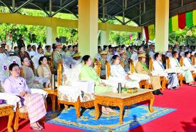 တပ်မတော်၏ အမျိုးသမီးစစ်မှုထမ်းများ၏ အခန်းကဏ္ဍကို အားသစ်လောင်းမည့် ဘွဲ့ရအမျိုးသမီးဗိုလ်လောင်းသင်တန်းအမှတ်စဉ်(၁၂) သင်တန်းဆင်းဂုဏ်ပြု စစ်ရေးပြအခမ်းအနားကို ယနေ့နံနက်ပိုင်းတွင် ရန်ကုန်မြို့ရှိ တပ်မတော်(ကြည်း) ဗိုလ်သင်တန်းကျောင်း(မှော်ဘီ)စစ်ရေးပြကွင်း၌ ကျင်းပပြုလုပ်ရာ နိုင်ငံတော်လုံခြုံ ရေးနှင့် အေးချမ်းသာယာရေးကော်မရှင်ဥက္ကဋ္ဌ တပ်မတော်ကာကွယ်ရေးဦးစီးချုပ် ဗိုလ်ချုပ်မှူးကြီး သတိုးမဟာသရေစည်သူ သတိုးသီရိသုဓမ္မ မင်းအောင်လှိုင် တက်ရောက်မိန့်ခွန်းပြောကြားသည်။