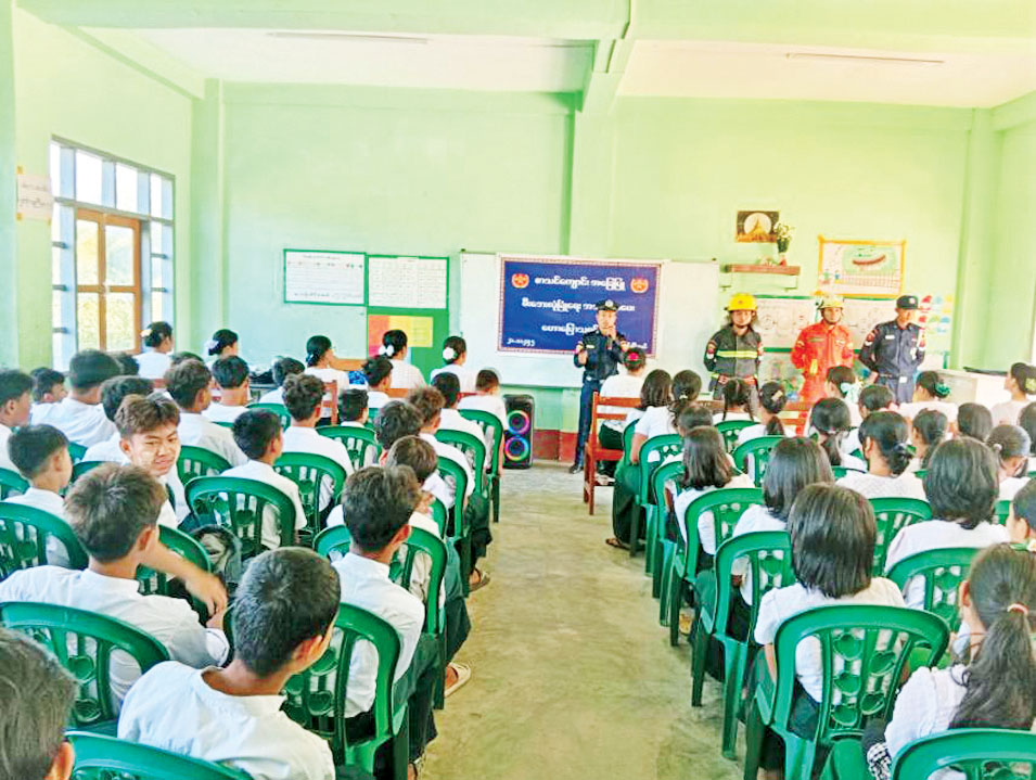 ထို့နောက် မြို့နယ်မီးသတ်စခန်းတပ်ဖွဲ့ဝင်များက မီးသတ်ဆေးဘူးကို အသုံးပြု၍ မီးငြှိမ်းသတ်နည်း၊ ဆီမီးလောင်မှုကို ဖုံးအုပ်ငြှိမ်းသတ်နည်း၊ ဂက်စ်မီးလောင်မှုကို ငြှိမ်းသတ်နည်းများ၊ မီးသတ်ပိုက် အသုံးပြု၍ ရေစိုဇာတ်တိုက်လေ့ကျင့်ခြင်းတို့ကို ကျောင်းသား ကျောင်းသူ၊ ဆရာ ဆရာမ ၁၅၀ အား လက်တွေ့လေ့ကျင့်သရုပ်ပြခြင်းများဆောင်ရွက်ခဲ့ကြောင်း သိရသည်။