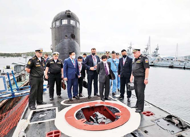 ဒုတိယမြောက် ဆက်လက်လေ့လာသည်က အရှေ့ဖျားရေငုပ်သင်္ဘောဌာနချုပ် Pacific Fleet Headquarters ဖြစ်ပြီး Deputy Commander of Pacific Navy Fleet ဖြစ်သူ Rear-Admiral Vladimir ASTAKHOV နှင့် တာဝန်ရှိသူများက ကြိုဆိုသည်။ ထို့နောက် ရေငုပ်သင်္ဘောဌာနချုပ် အတွင်းတွင်ရှိသည့် ရေငုပ်သင်္ဘောများပြုပြင် ထိန်းသိမ်းရေးဆောင်ရွက်မှု၊ ကမ်းကပ်ရေငုပ် သင်္ဘောများ၏အုပ်ချုပ် ထောက်ပံ့ရေးလုပ်ငန်းများ ဆောင်ရွက်ပေးနေမှုတို့ကို လိုက်လံရှင်းလင်းပြသ သည့် အင်အားတောင့်တင်းသည့် ရေတပ်ပီပီ ရေငုပ် သင်္ဘောများကမနည်းလှ။