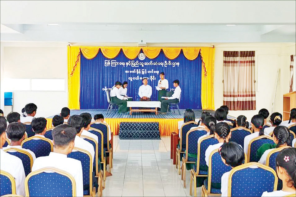 ဧရာဝတီတိုင်းဒေသကြီး ပန်းတနော်မြို့နယ်၌ ပြန်ကြားရေးနှင့်ပြည်သူ့ဆက်ဆံရေးဦးစီးဌာနနှင့် အခြေခံပညာဦးစီးဌာနတို့ ပူးပေါင်း၍ စာဖတ်ရှိန်မြှင့်တင်ရေးအတွက် လူငယ်စကားဝိုင်းကို ယနေ့နံနက်ပိုင်းက ပြန်ကြားရေးနှင့်ပြည်သူ့ဆက်ဆံရေးဦးစီးဌာန လူထုအခြေပြုဗဟိုဌာန၌ ကျင်းပသည်။