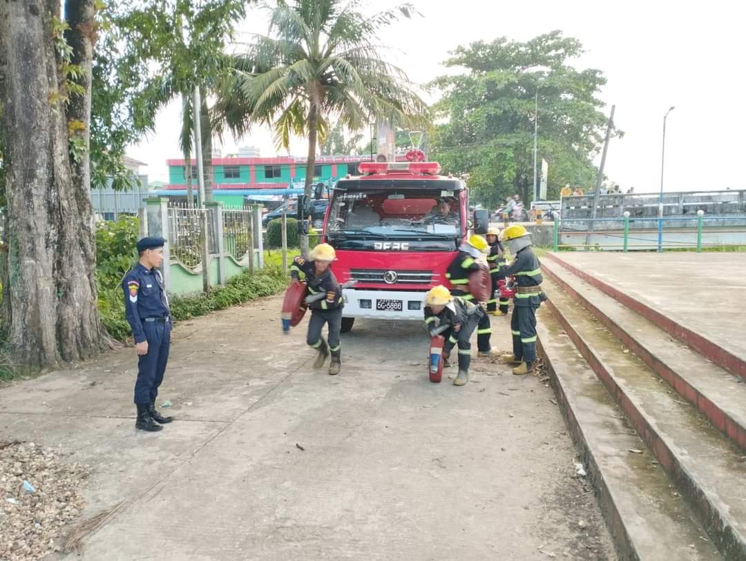 ထိုသို့ဆောင်ရွက်ရာတွင် သဘာဝဘေးအန္တရာယ်နှင့် နွေရာသီပူပြင်သော ခြောက်သွေ့သော ကာလရောက်ရှိလာသဖြင့် ပြည်သူများအနေဖြင့် မီးဘေးအန္တရာယ် ကြိုတင်ကာကွယ်ရေး အသိပညာပေး လိုက်လံစစ်ဆေးခြင်းနှင့် မီးဘေးအန္တရာယ်ကြုံတွေ့လာပါက ကျွမ်းကျင်ပိုင်နိုင်စွာ အချိန်မီ မီးငြှိမ်းသတ်နိုင်ရေးအတွက် မြို့နယ် မီးသတ်ဦးစီးမှူး ဦးမောင်မောင်ဦး ဦးဆောင်၍ မီးသတ်တပ်ဖွဲ့ဝင်များမှ ပန်းရွှေဝါပန်းခြံရှေ့ River View ပေါ်တွင် ဇာတ်တိုက်လေ့ကျင့်မှုများ ပြုလုပ်ခဲ့သည်။