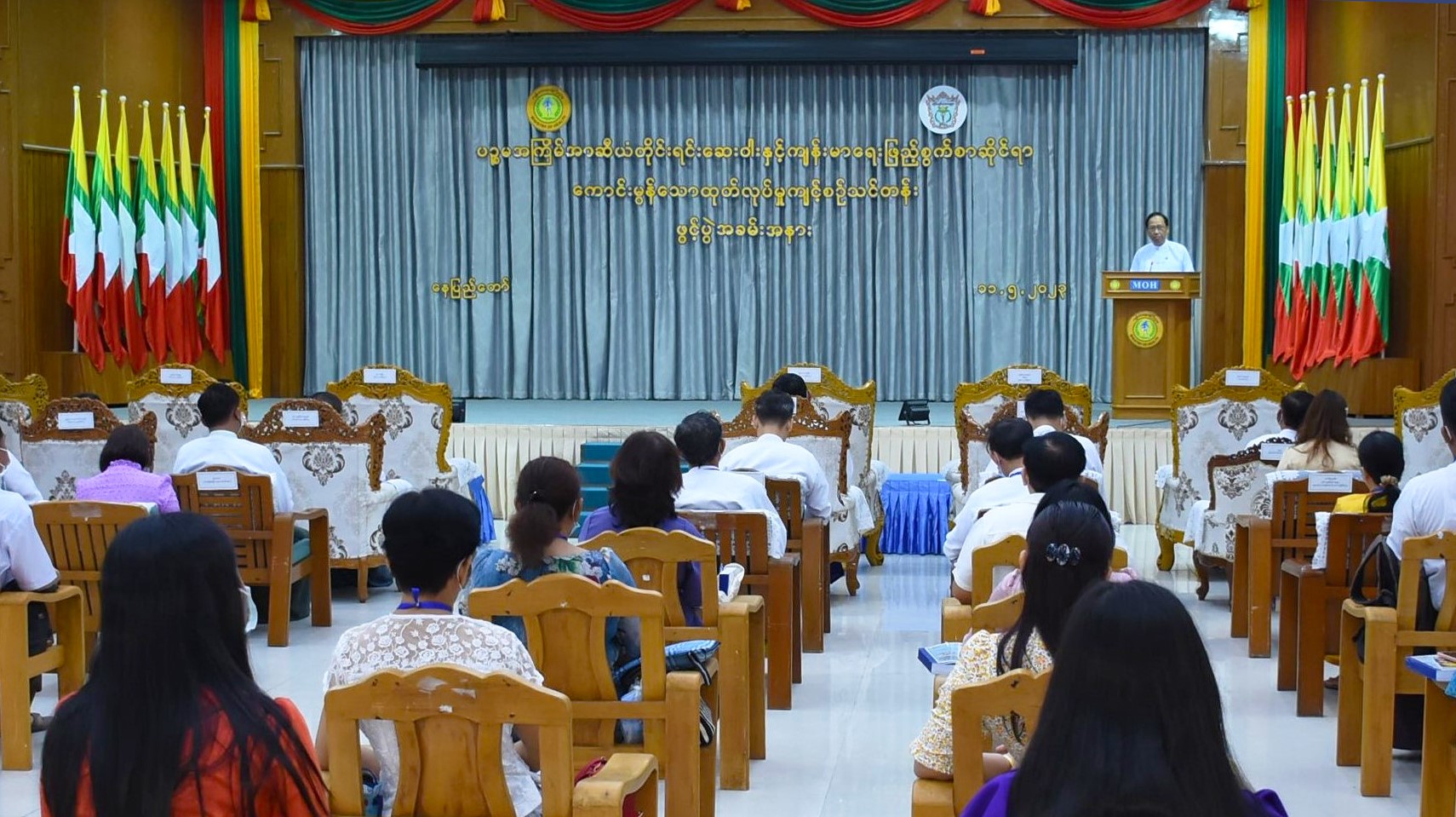 ပဉ္စမအကြိမ် အာဆီယံ တိုင်းရင်းဆေးဝါးနှင့် ကျန်းမာရေးဖြည့်စွက်စာဆိုင်ရာ ကောင်း မွန်သော ထုတ်လုပ်မှုကျင့်စဉ်သင်တန်း ဖွင့်ပွဲကို ယနေ့နံနက်ပိုင်းတွင် နေပြည်တော်၊ ကျန်းမာ ရေးဝန်ကြီးဌာန၊ ရုံးအမှတ်(၄)အစည်းအဝေးခန်းမ၌ ကျင်းပရာ ကျန်းမာရေးဝန်ကြီးဌာန ပြည် ထောင်စုဝန်ကြီး ပါမောက္ခ ဒေါက်တာသက်ခိုင်ဝင်း၊ ဒုတိယဝန်ကြီး ပါမောက္ခ ဒေါက်တာအေးထွန်း နှင့် ညွှန်ကြားရေးမှူးချုပ်များ၊ ဒုတိယညွှန်ကြားရေးမှူးချုပ်များ၊ ညွှန်ကြားရေးမှူးများ၊ မြန်မာနိုင်ငံတိုင်းရင်းဆေးကောင်စီ၊ မြန်မာနိုင်ငံတိုင်းရင်းဆေးဆရာအသင်း(ဗဟို) နှင့် မြန်မာနိုင်ငံတိုင်းရင်းဆေးဝါးထုတ်လုပ်သူများနှင့် ဆေးပစ္စည်းလုပ်ငန်းရှင်များအသင်းတို့မှ ဥက္ကဌ များ၊ သင်တန်းသားသင်တန်းသူများ တက်ရောက်ကြသည်။