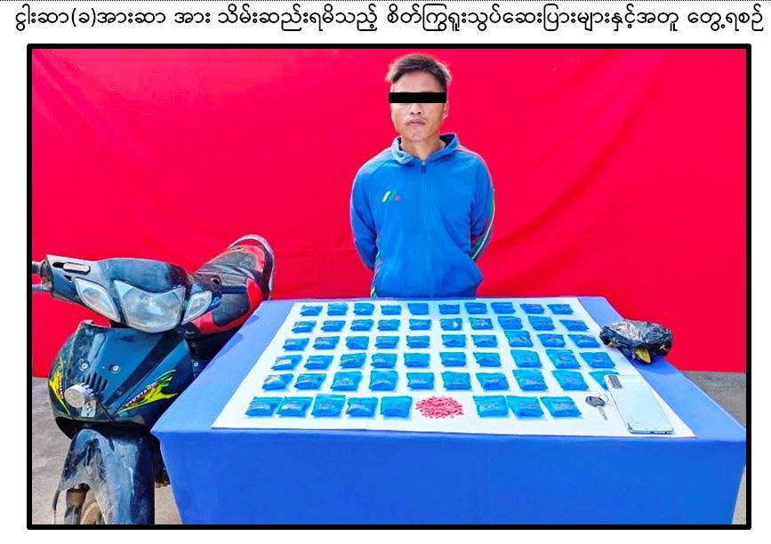 အလားတူ မေ ၅ ရက် နံနက် ၆ နာရီတွင် နမ့်ခမ်းမြို့၊ အမှတ်(၁)ရပ်ကွက်၊ မူဆယ်-နမ့်ခမ်းသွားပြည်ထောင်စု ကားလမ်းကြီး၊ မိုင်တိုင်အမှတ်(၃၀၁/၄)အနီးတွင် ငွါးဆာ(ခ)အားဆာ မောင်းနှင်လာသော မော်တော်ဆိုင်ကယ်အား ရပ်တန့်စစ်ဆေးရှာဖွေရာ ဆိုင်ကယ်ရှေ့ ဝဲ/ယာဒူးကာအတွင်းမှ စိတ်ကြွ ရူးသွပ်ဆေးပြား ၁၁,၆၀၀ ပြား သိမ်းဆည်းရမိခဲ့သဖြင့် ၎င်းတို့အား မူးယစ်ဆေးဝါးနှင့် စိတ်ကိုပြောင်းလဲစေသော ဆေးဝါးများဆိုင်ရာဉပဒေအရ အရေးယူထားကြောင်း သိရသည်။